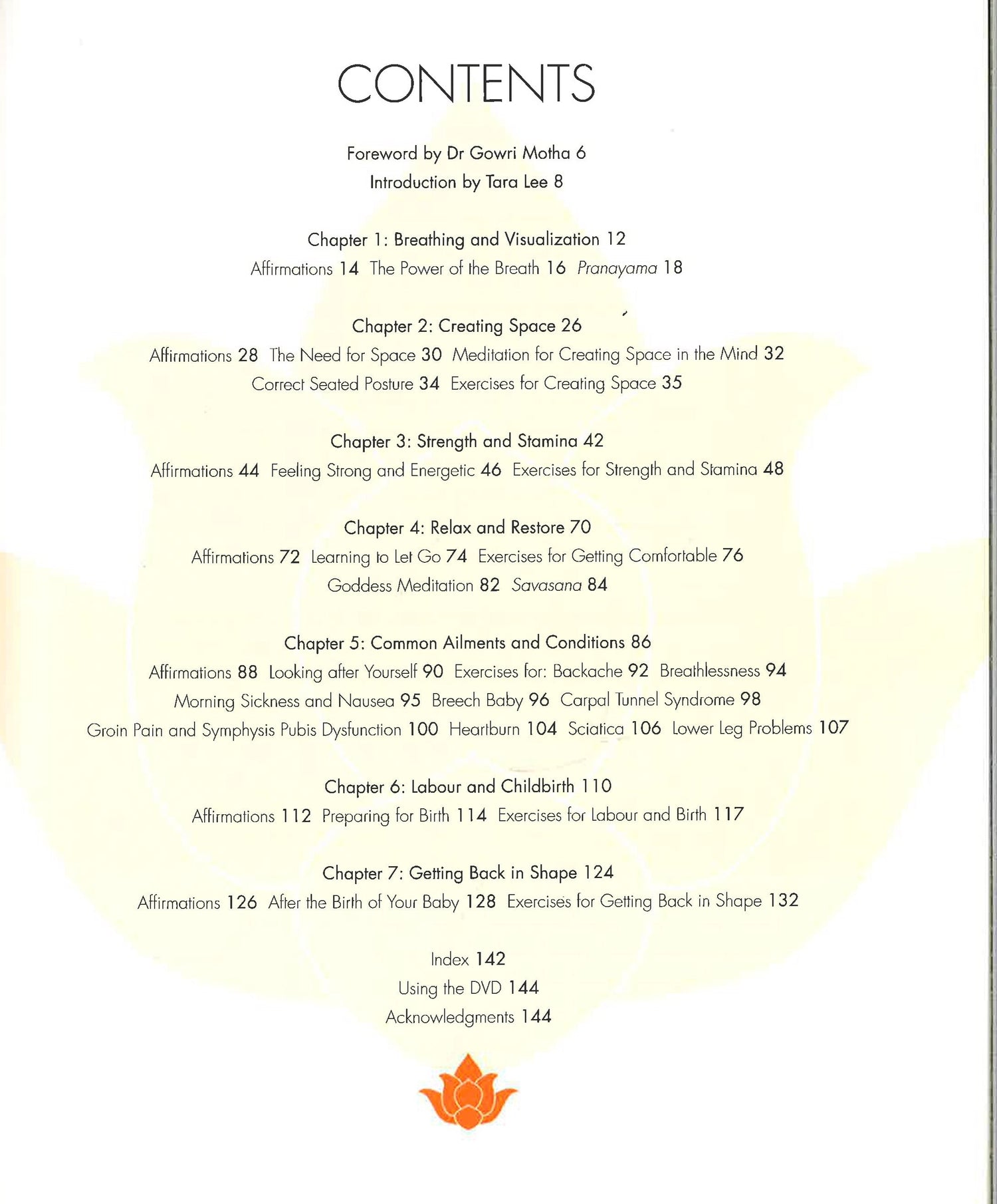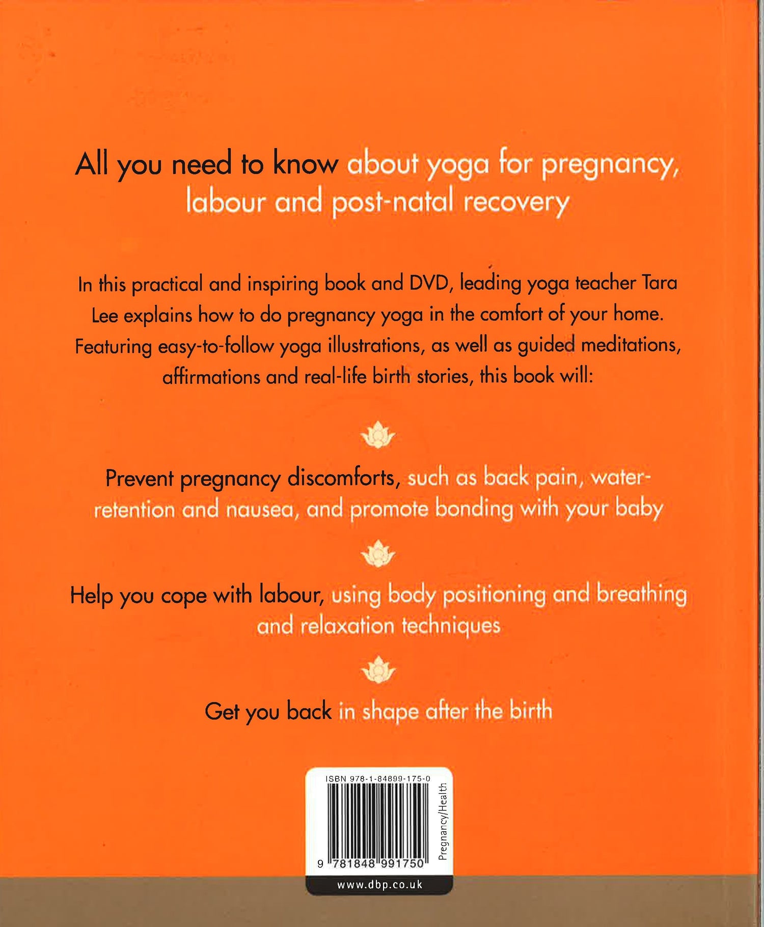 All you need to know about yoga for pregnancy, labour and post natal recovery. In this practical and inspiring book and DVD, leading yoga teacher Tara Lee explains how to do pregnancy yoga in the comfort of your home. Featuring easy to follow yoga illustrations, as well as guided meditations, affirmations and real life birth stories. This book will: Prevent pregnancy discomforts.Help you cope with labour.Get you back in shape after the birth. Includes How to DVD.