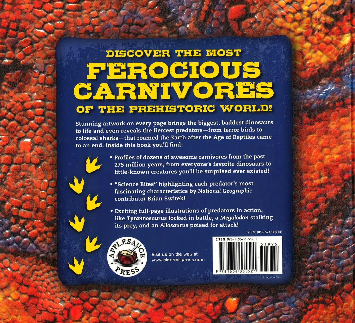 The biggest baddies of the prehistoric world -- the carnivores -- come alive in Prehistoric Predators. From favorites like T-Rex and Giganotosaurus, to the ferocious Spinosaurus and terrifying Megalodon, the stunning full-color illustrations from renowned paleoartist Julius Csotonyi make these dangerous creatures spring to life on each page. Bursting with fascinating facts written by National Geographic contributor Brian Switek, dynamic artwork, and a unique dino-skin textured cover, this is the perfect book for dinosaur lovers of every age!