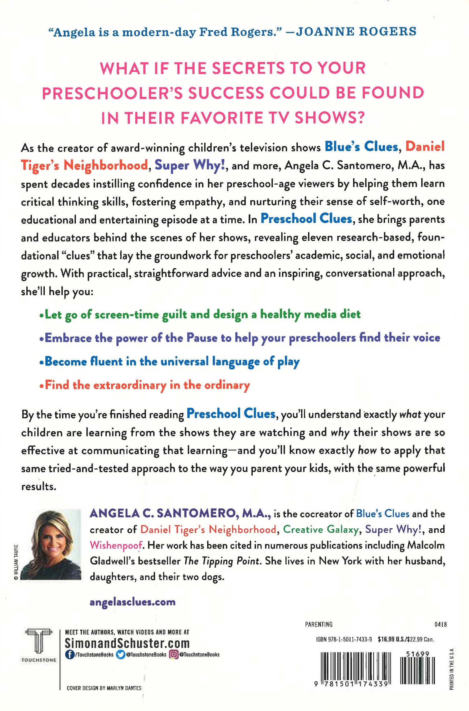 The award-winning creator of Blue's Clues, Super Why!, and Daniel Tiger's Neighborhood shares the secret sauce behind her shows' powerful, transformative results in the form of eleven research-based, foundational "clues" to ensure that preschoolers flourish academically, socially, and emotionally during this critical time. The preschool years--when children are between the ages of two and five--are the most influential, important years in a child's life. Studies show that pausing to interact, playing to solve problems, diffusing with humor, and using repetition are the hidden clues conscious parents use to raise successful kids and help them learn critical thinking skills, foster empathy, and nurture their sense of self-worth. Angela C. Santomero, MA, the award-winning creator of children's television phenomena knows this better than anyone and has spent decades working to instill confidence in her young viewers. In Preschool Clues, she breaks down the philosophy behind her shows--educating, inspiring, and empowering kids--into concrete strategies that parents and educators can incorporate into their family and classroom to set their preschoolers up for success, such as: -Intentionally pausing to foster bonding, independence, and resilience -Developing empathy and confidence through soliciting preschoolers' help -Becoming "fluent" in the language of preschoolers: Play -Igniting your preschooler's curiosity -Being an involved co-player everyday -Designing a healthy media diet In Preschool Clues, Angela shares the latest research from top thinkers in child development and education. Through her practical, straightforward advice and inspiring, conversational approach, you will not only understand exactly what your children are learning from the shows they watch and why these shows are so effective, you'll know exactly how to apply these same proven approaches in your daily life and with the same powerful results.