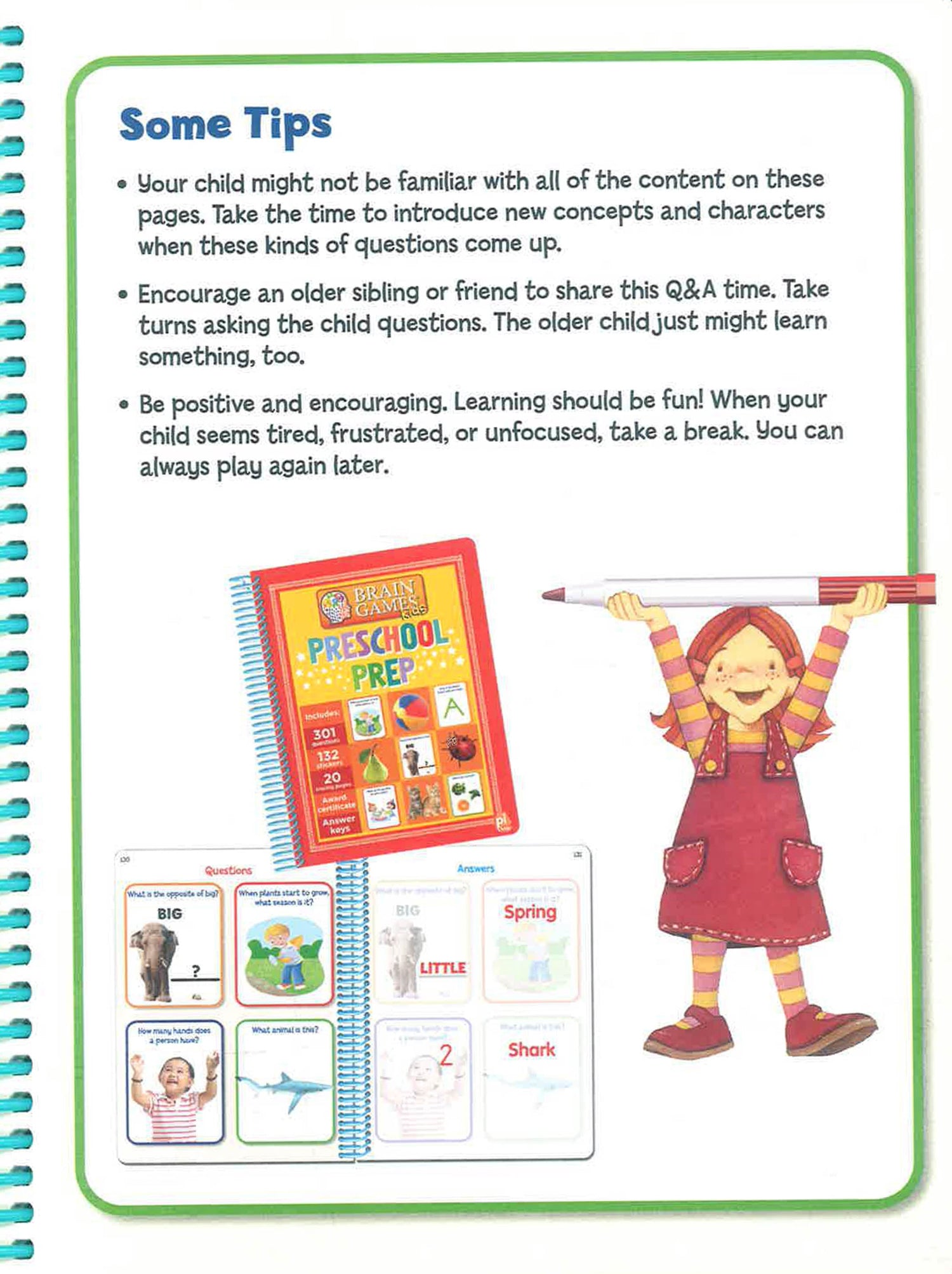 Packed with engaging questions and bright illustrations, Brain Games Kids: Preschool Prep introduces your child to age-appropriate learning concepts in Language Arts, Math, Science, Social Sciences, Physical & Emotional Development, and Fine Arts