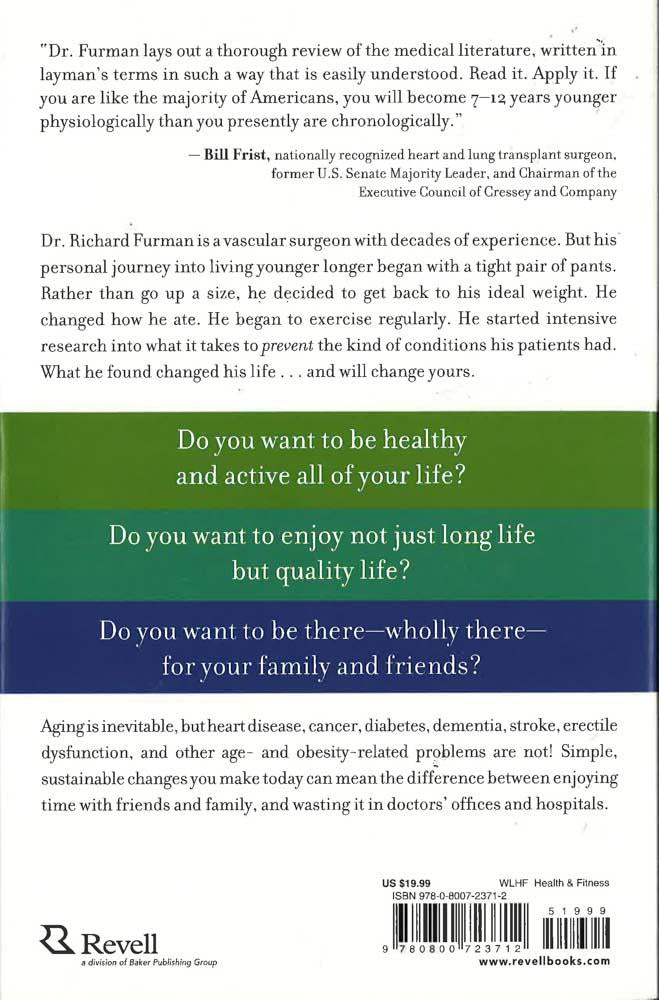 During his more than thirty years as a vascular surgeon, Richard Furman literally held clogged arteries and diseased hearts in his hands and wondered why the person lying on the table hadn't been more careful. Heart disease is the number one killer of men and women in America, and in most cases it is completely preventable. So why are we slowly destroying our bodies and killing ourselves? And what can we do to turn it around? The good news is, simple, sustainable lifestyle changes can mean the difference between health and infirmity, between life and death. Putting his three decades of experience and education to work, Dr. Furman gives readers the strategies they need to live not just longer, but "younger." This essential resource to health helps readers -achieve and maintain their ideal weight-reduce their risk for life-threatening diseases-make exercise a natural part of their lives-learn what foods to eat and what foods to avoid It even shows how following the plan can not only eliminate heart disease, but also keep people safe from various cancers, dementia, diabetes, stroke, erectile dysfunction, and other age- and obesity-related problems. Dr. Furman wants readers to realize that poor health during one's "golden years" is not inevitable. It can and should be avoided at all cost. And with his expert advice, readers can live long, healthy, vibrant lives, enjoying time with friends and family instead of wasting it in doctors' offices and hospitals.