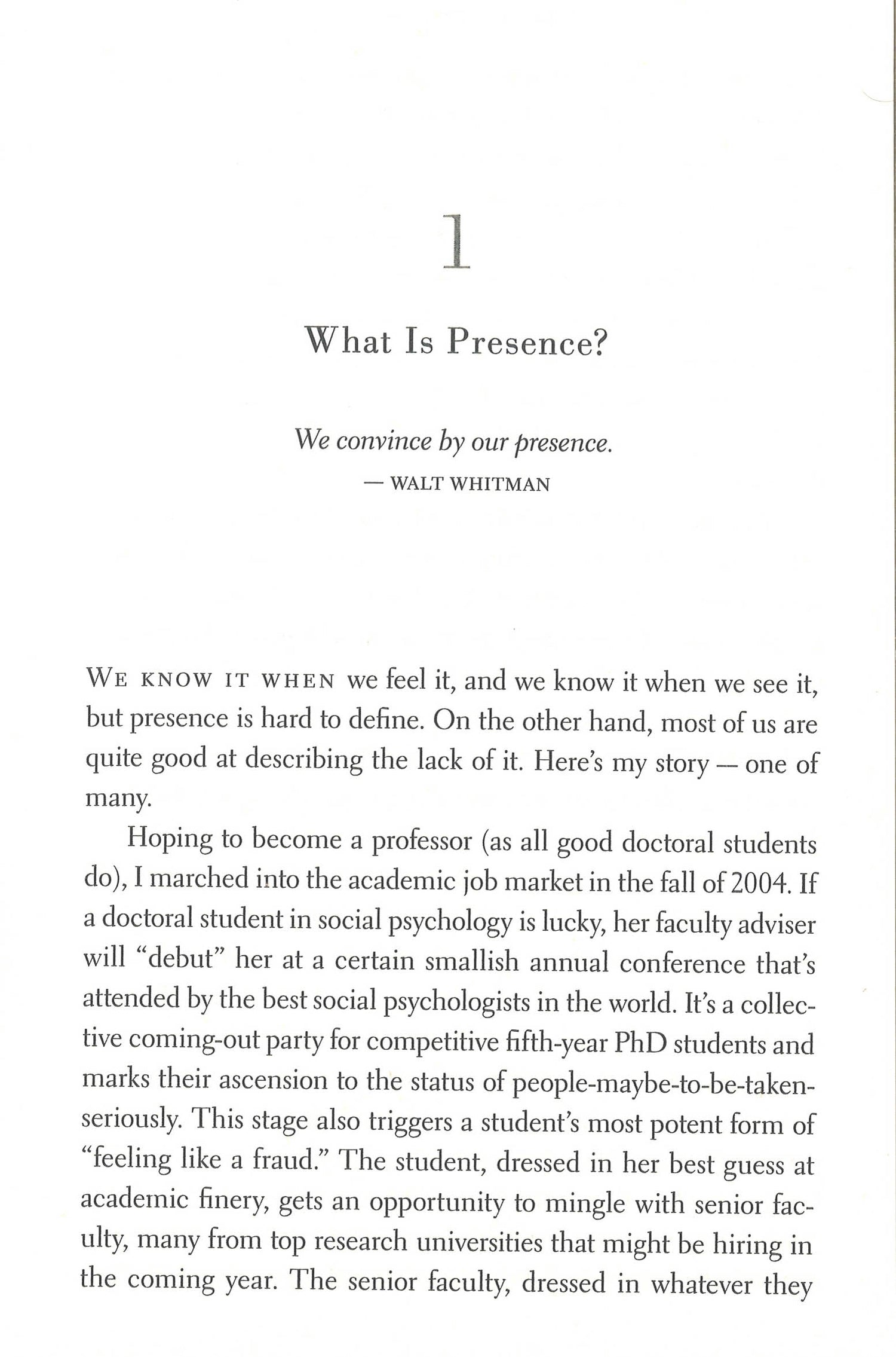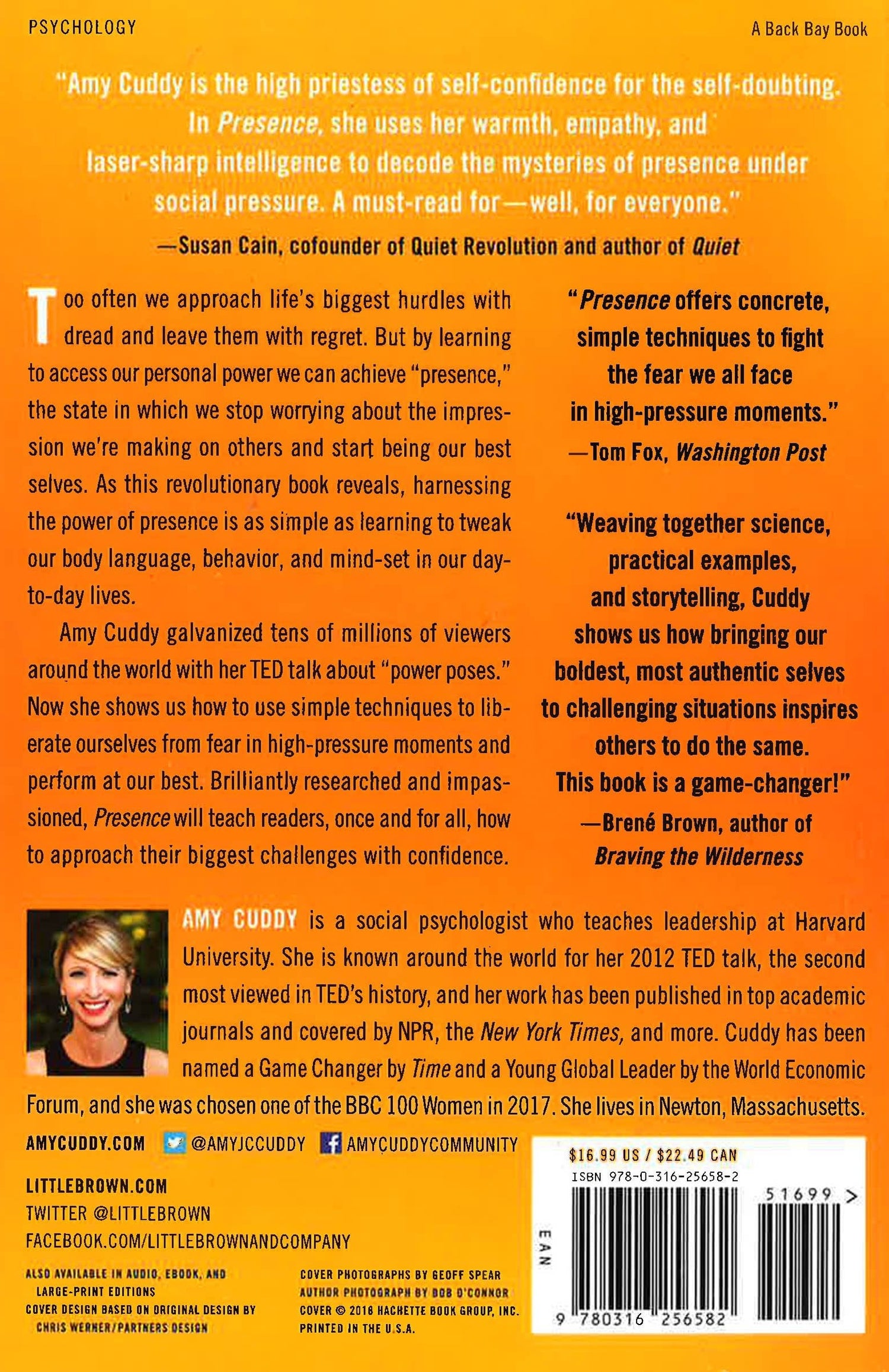 Have you ever left a nerve-racking challenge and immediately wished for a do over? Maybe after a job interview, a performance, or a difficult conversation? The very moments that require us to be genuine and commanding can instead cause us to feel phony and powerless. Too often we approach our lives' biggest hurdles with dread, execute them with anxiety, and leave them with regret. By accessing our personal power, we can achieve "presence," the state in which we stop worrying about the impression we're making on others and instead adjust the impression we've been making on ourselves. As Harvard professor Amy Cuddy's revolutionary book reveals, we don't need to embark on a grand spiritual quest or complete an inner transformation to harness the power of presence. Instead, we need to nudge ourselves, moment by moment, by tweaking our body language, behavior, and mind-set in our day-to-day lives. Amy Cuddy has galvanized tens of millions of viewers around the world with her TED talk about "power poses." Now she presents the enthralling science underlying these and many other fascinating body-mind effects, and teaches us how to use simple techniques to liberate ourselves from fear in high-pressure moments, perform at our best, and connect with and empower others to do the same.Brilliantly researched, impassioned, and accessible, Presence is filled with stories of individuals who learned how to flourish during the stressful moments that once terrified them. Every reader will learn how to approach their biggest challenges with confidence instead of dread, and to leave them with satisfaction instead of regret.