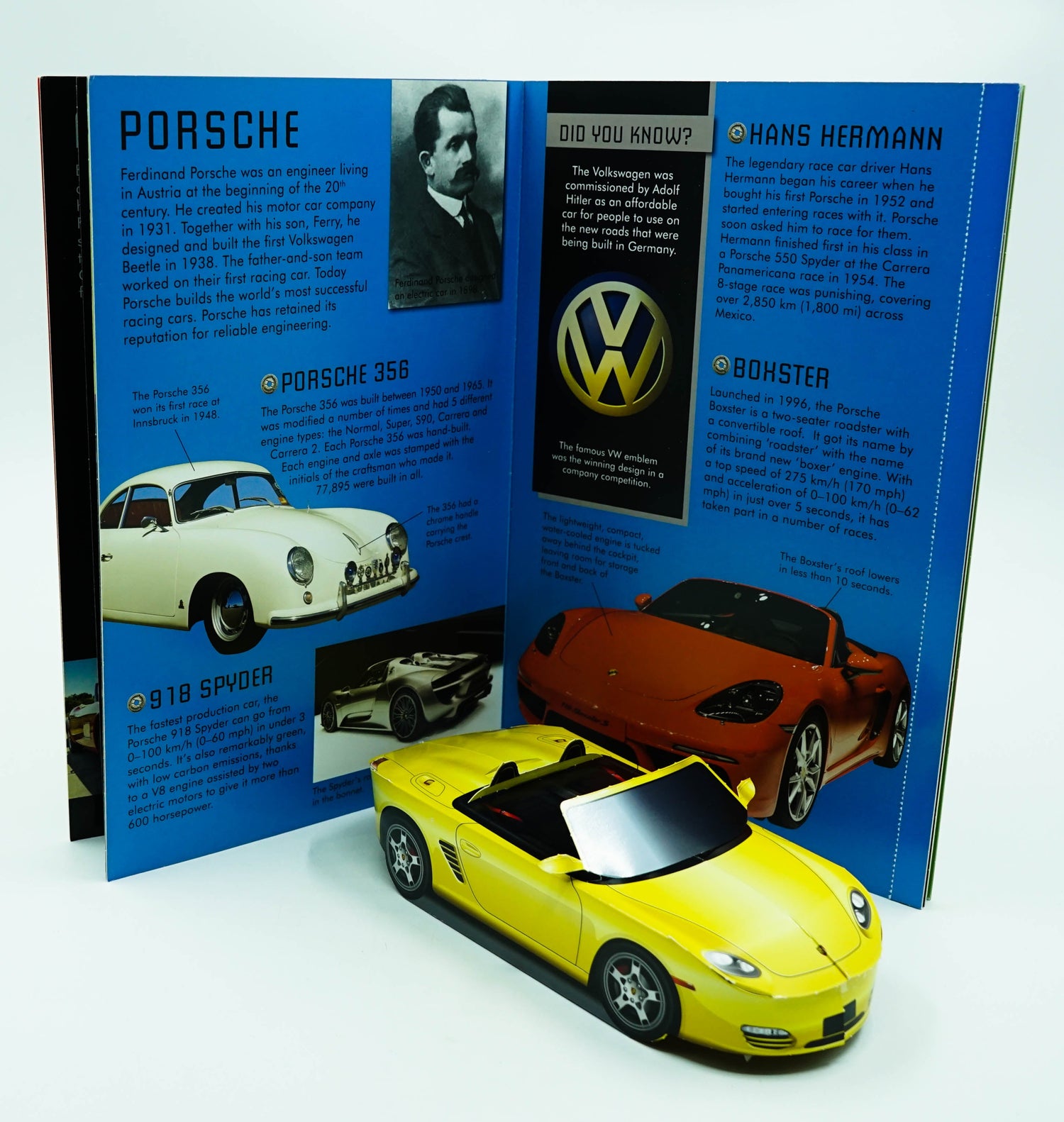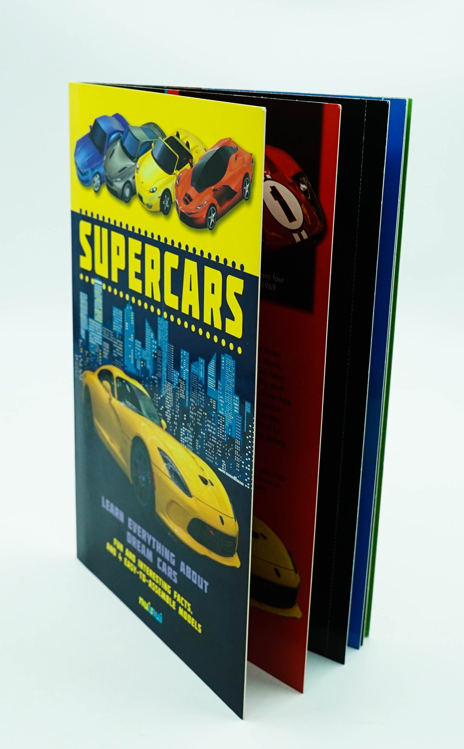 Each book is dedicated to a different topic and contains 4 3-D models, assembled by tearing out the prepared cardboard pieces indicated by the dotted lines. Just follow the instructions and watch as the objects in each book take form: 4 powerful spaceships, 4 amazing dinosaurs, 4 exciting emergency vehicles and 4 rumbling supercars. Colourful illustrations provide a background for the models, framing them in a convincing context. And there’s lots of information and fun facts for learning more about the various topics, making these volumes both interesting to read and great fun to play with