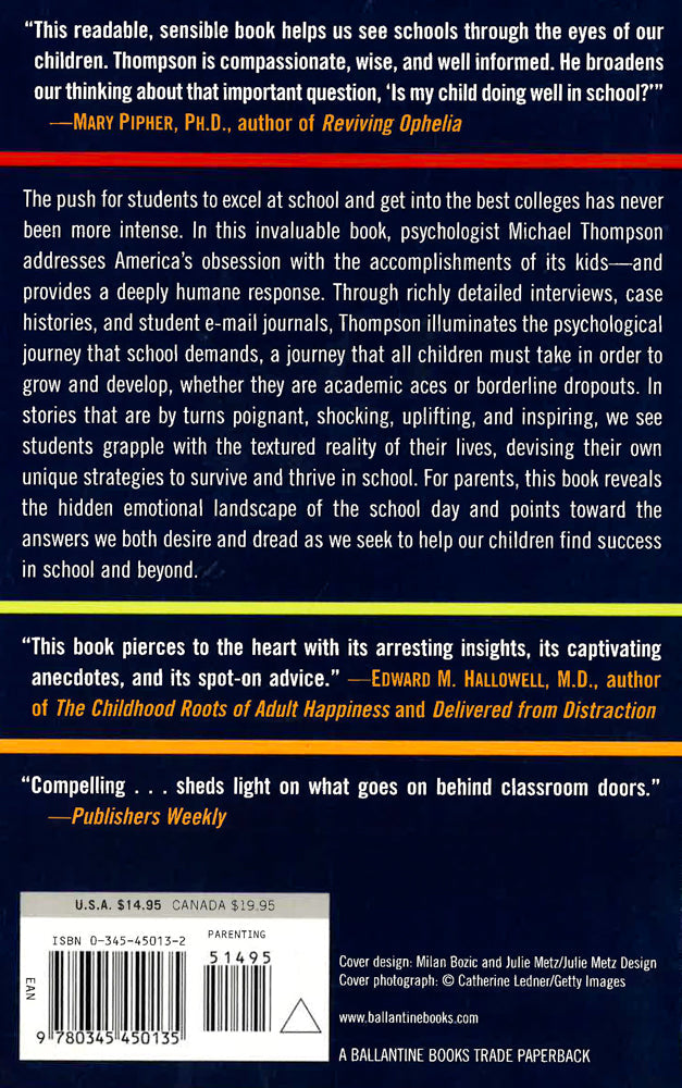 "How was school?" These three words contain a world of desire on the part of parents to know what their children are learning and experiencing in school each day. Children may not divulge much, but psychologist Michael Thompson suggests that the answers are there if we know how to read the clues and-equally important-if we remember our own school days.