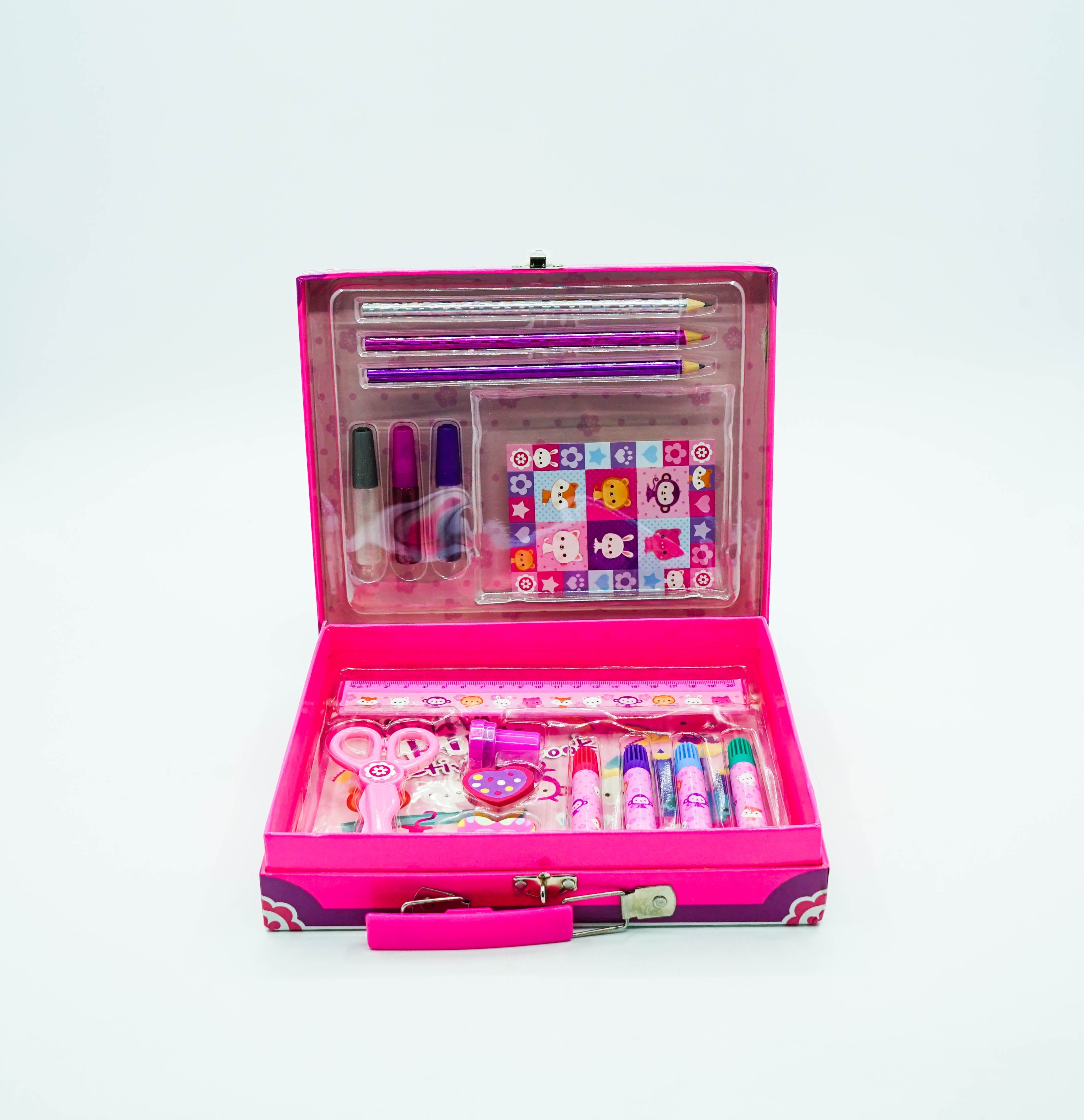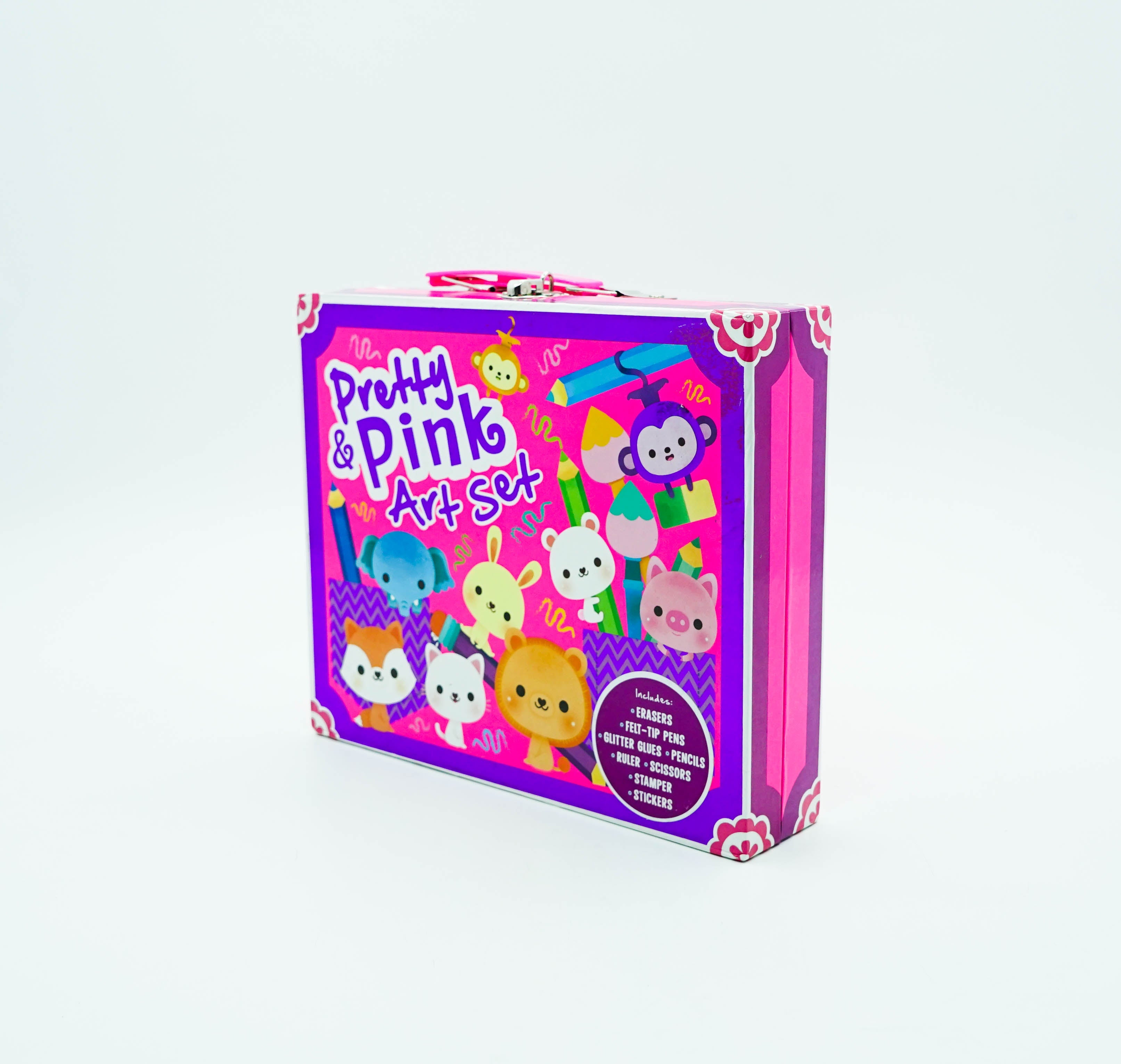 Create beautiful pictures anf make-and-do masterpieces with this pretty and pink art set. With a cute starter art kit, including glitter gluesn pencils, a stamper and an adorable activity book, this fabulous art set will keep every little artist entertained for hours.
