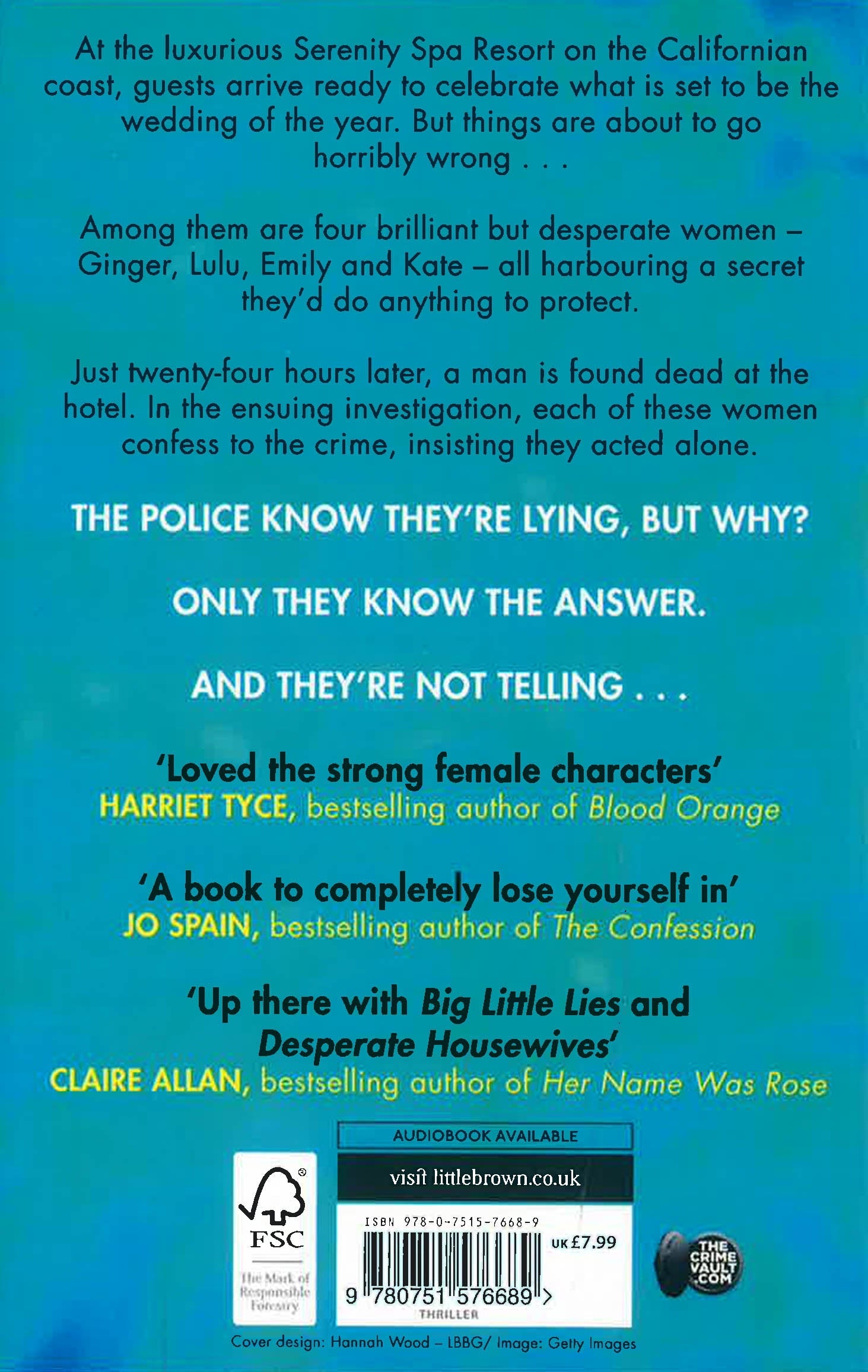 Why would four women confess to the same murder? At the luxurious Serenity Spa Resort on the Californian coast, guests arrive ready to celebrate what is set to be the wedding of the year. But things are about to go horribly wrong . . .Among them are four brilliant but desperate women - Ginger, Lulu, Emily and Kate - all harbouring a secret they'd do anything to protect. Just twenty-four hours later, a man is found dead at the hotel. In the ensuing investigation, each of these women confess to the crime, insisting they acted alone.