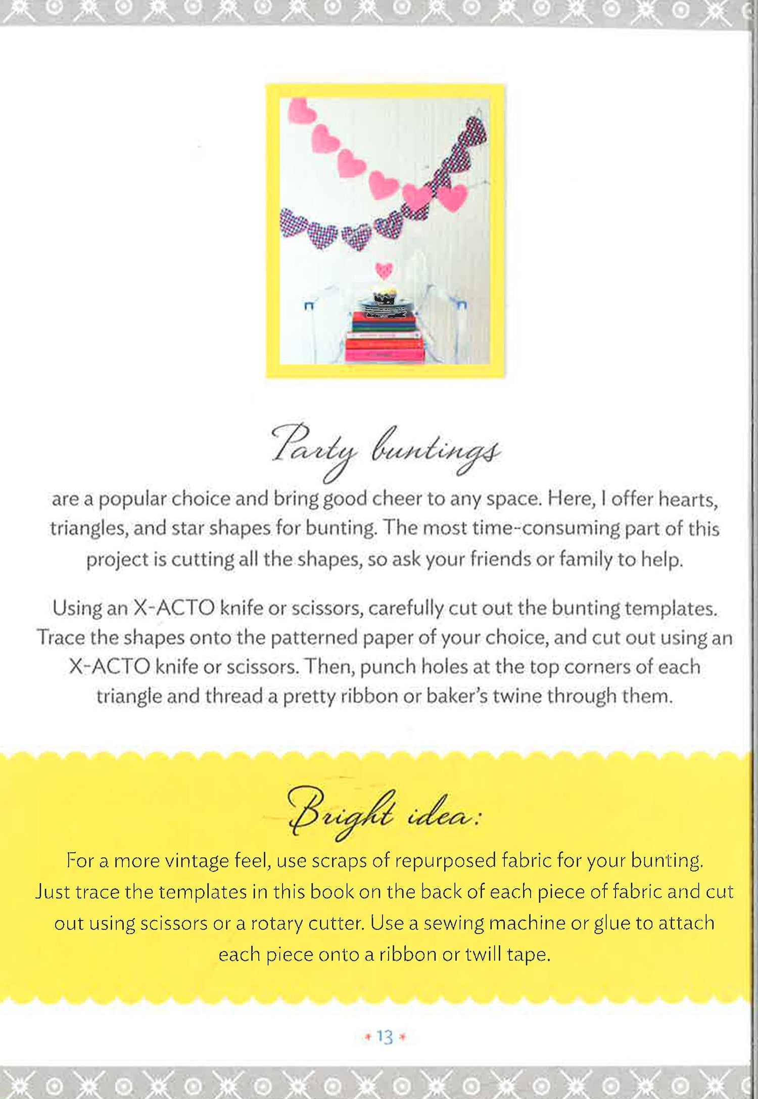 Instant party props! With the materials in this portfolio: 40 sheets of gorgeous patterned paper, ready-to-cut templates, plus step-by-step instructions, stunning party decorations are only a few snips away. Garlands, cupcake toppers, bunting, goofy photo booth props, banners and more! Crafty types can mix and match the colour palettes and patterns to create truly personal celebrations for baby showers, birthdays, and engagement parties, or just for fun!