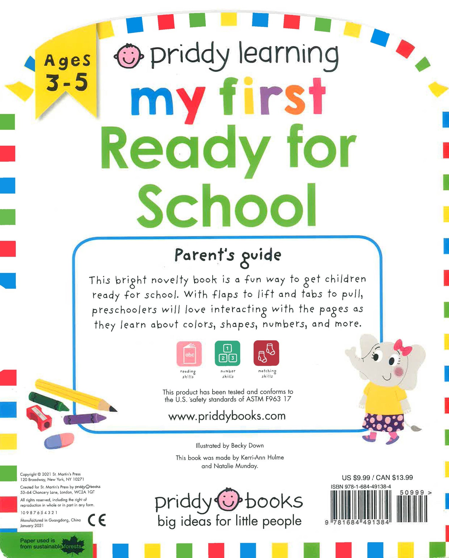 Priddy Learning: My First Ready for School is an interactive early-learning book from Priddy Books. Aimed at preschoolers, it is full of interactive features to get kids ready for starting school.