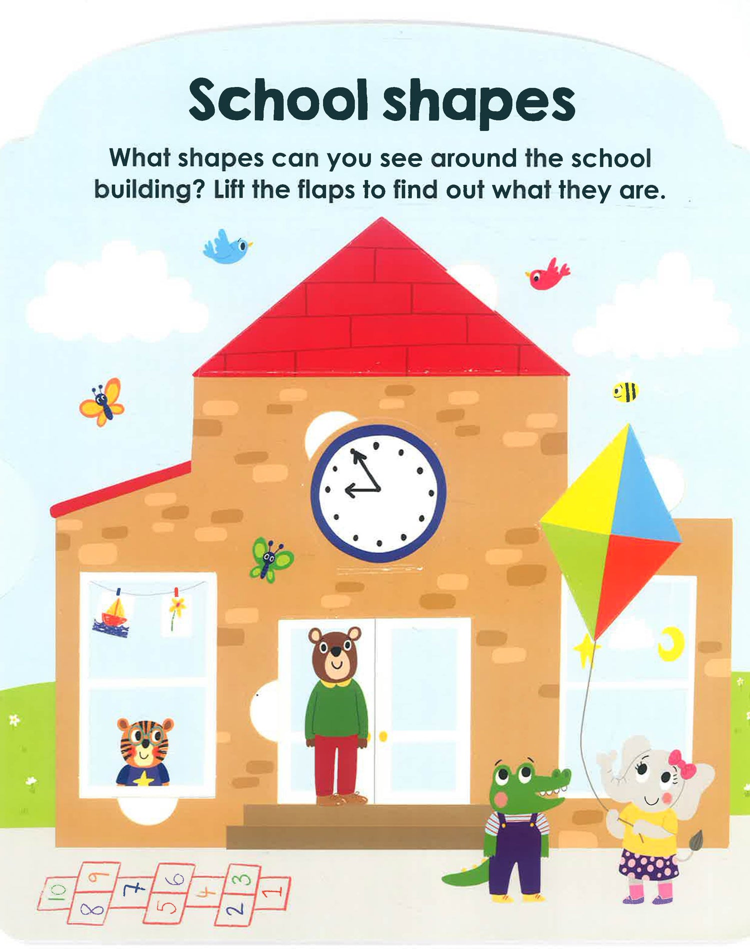 Set in a school environment, every page has a different novelty—either flaps to lift or a tab to pull—while teaching children about concepts such as counting, opposites, colors, shapes, and more. The bright simple activities and friendly animal characters make this a really fun way to learn.