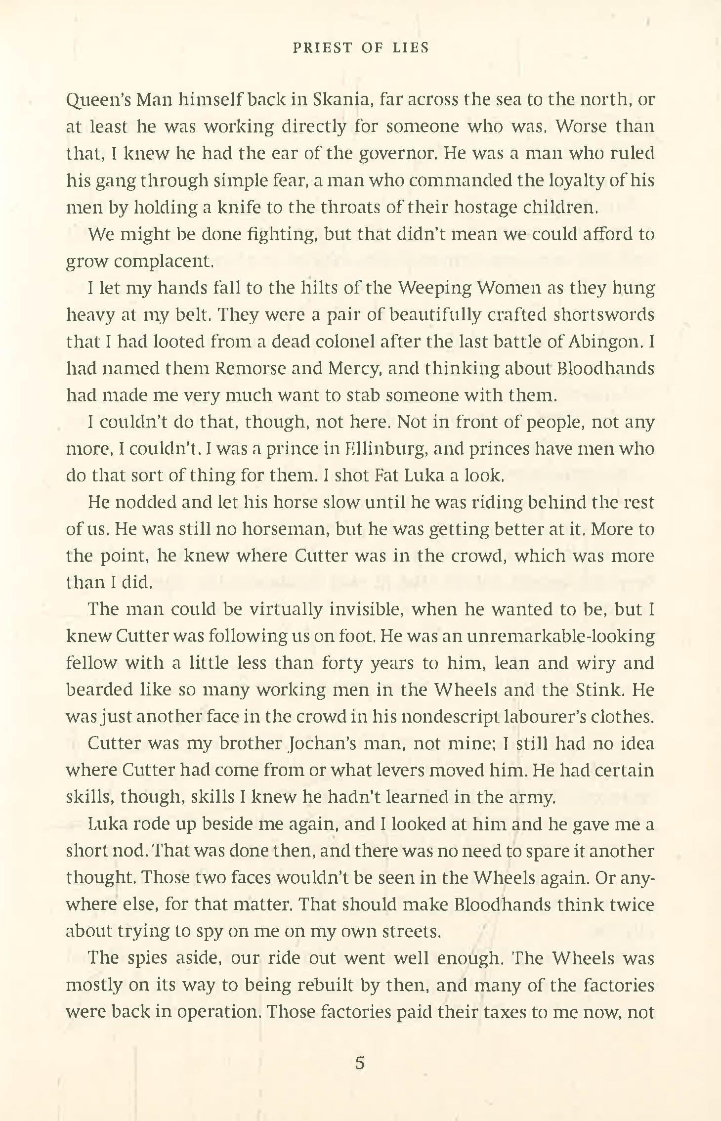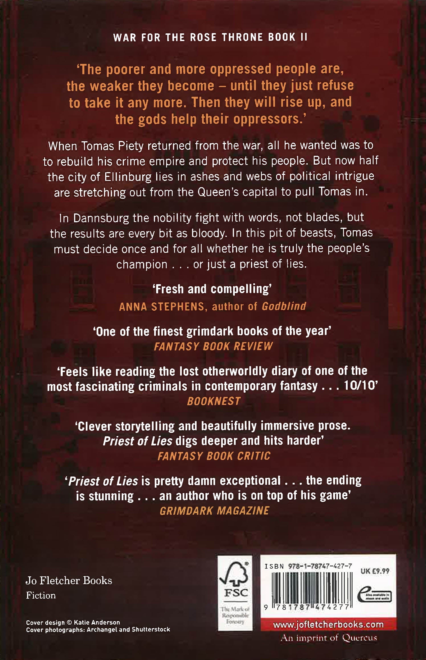 In Dannsburg the nobility fight with words, not blades, but the results are every bit as bloody. In this pit of beasts, Tomas must decide once and for all whether he is truly the people's champion . . . or just a priest of lies.