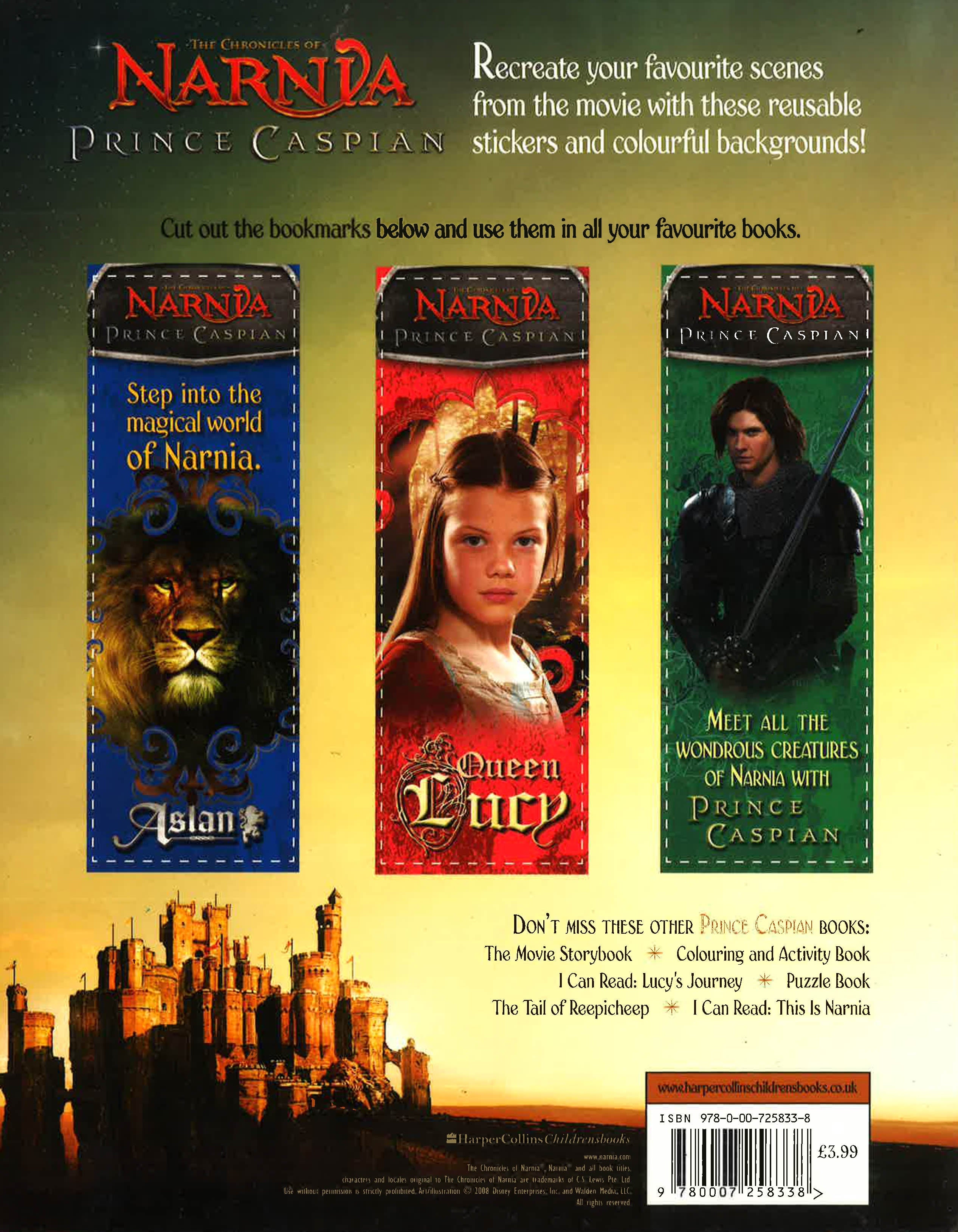 Return to Narnia with Prince Caspian; in cinemas Summer 2008! This sticker activity book is packed with fun ways to help Peter, Susan, Edmund and Lucy rescue Prince Caspian and reinstate the rightful king to the throne of Narnia.