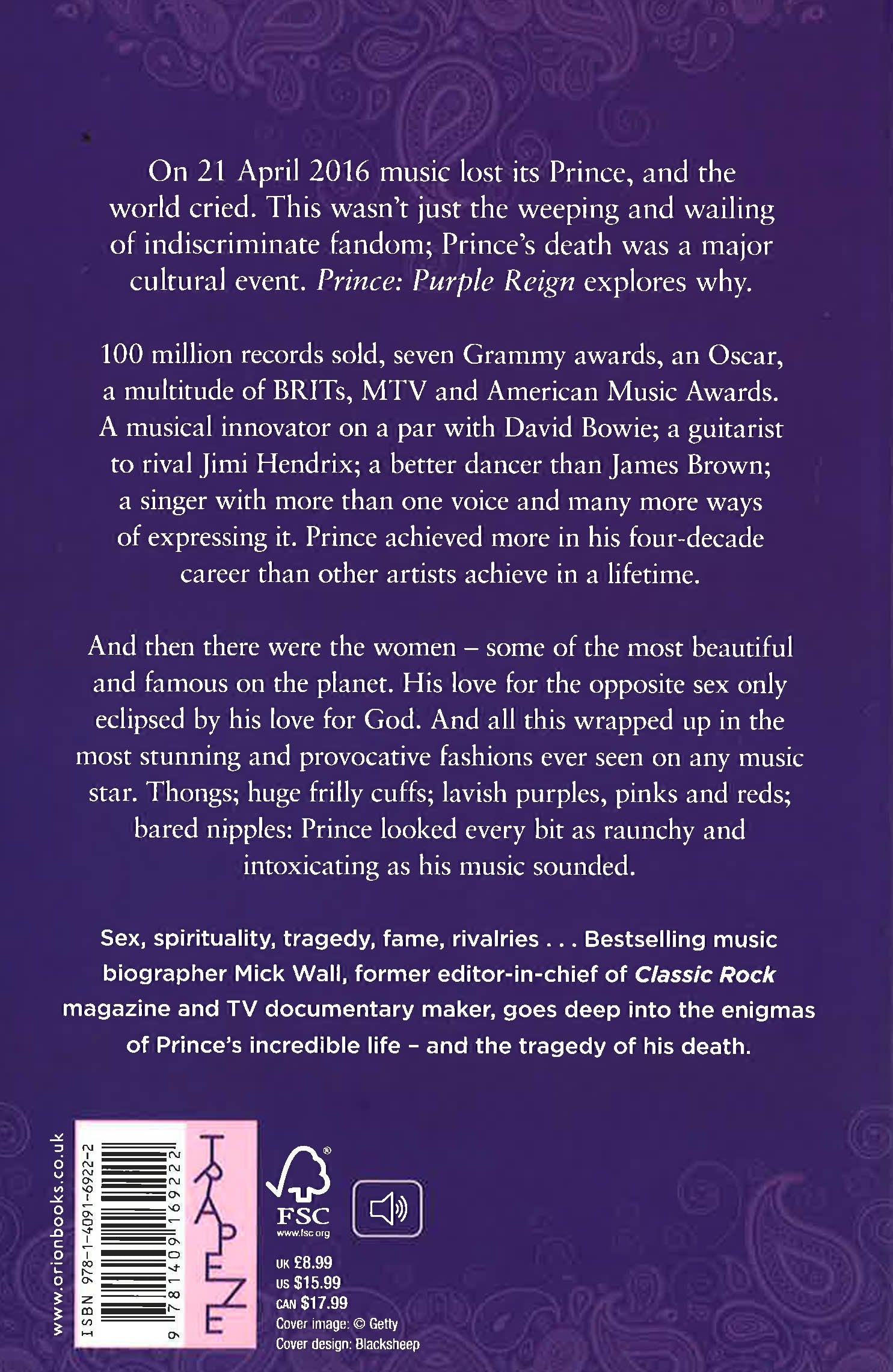 Prince was an icon. A man who defined an era of music and changed the shape of popular culture forever. There is no doubt that he was one of the most talented and influential artists of all time, and also one of the most mysterious. On 21st April 2016 the world lost its Prince; it was the day the music died.This book will open a door to Prince's world like never before - from his traumatic childhood and demonic pursuit of music as a means of escape, to his rise to superstardom, professional rivalries and marriages shrouded in tragedy, internationally bestselling music writer Mick Wall explores the historical, cultural and personal backdrop that gave rise to an artist the likes of which the world has never seen - and never will again.Mick, a lifelong Prince fan, was one of the first UK journalists to ever write about this enigmatic star, and it was his story that put Prince on the cover of Kerrang magazine in 1984 and inspired the biggest mailbag of letters the magazine has ever had. As Prince sang in '7', 'no one in the whole universe will ever compare', and this book is a shining tribute to the forever incomparable Prince.