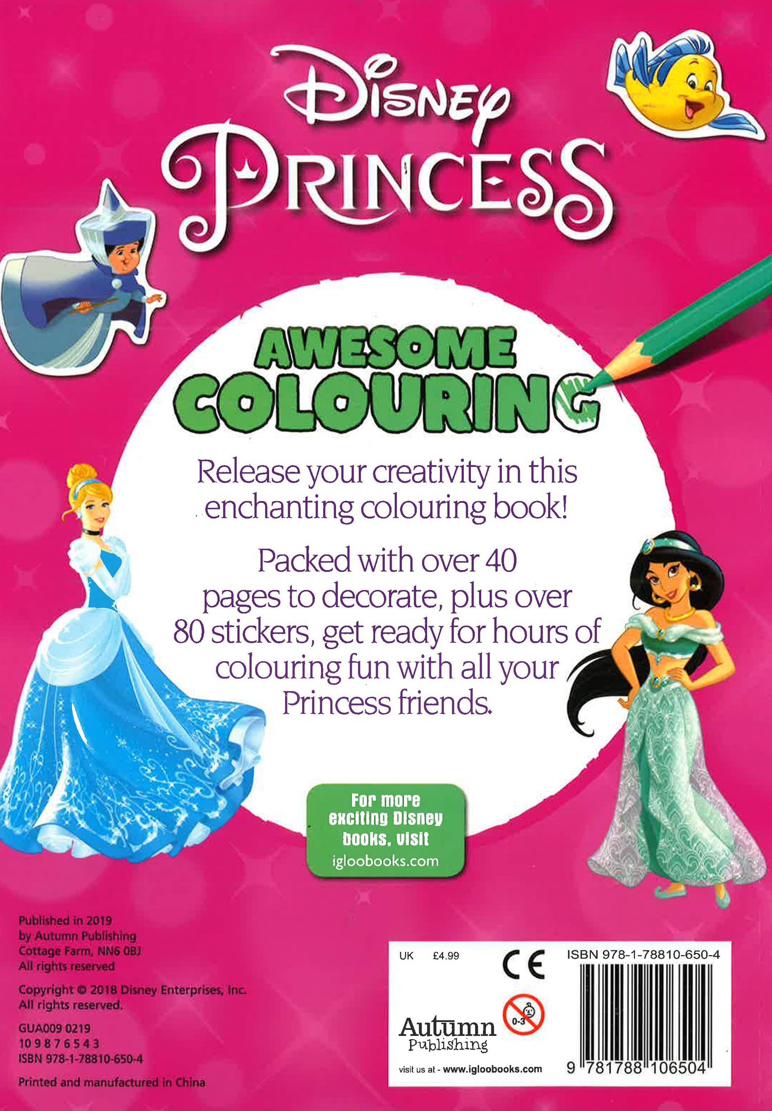 Release your creativity in this enchanting colouring book! Packed with over 40 pages to decorate, plus over 80 stickers, get ready for hours of colouring fun with all your Princess friends.
