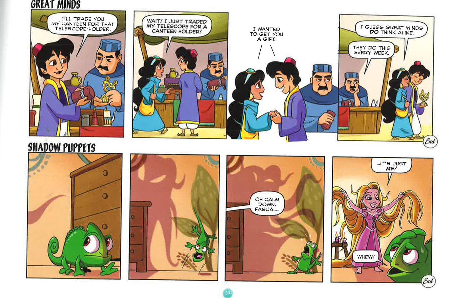 Tag along as Ariel discovers what sharks dream about, discover what happens when Snow White goes to the mine with the Dwarfs, count the stars with Rapunzel, and so much more in these laugh-out-loud comic strips.