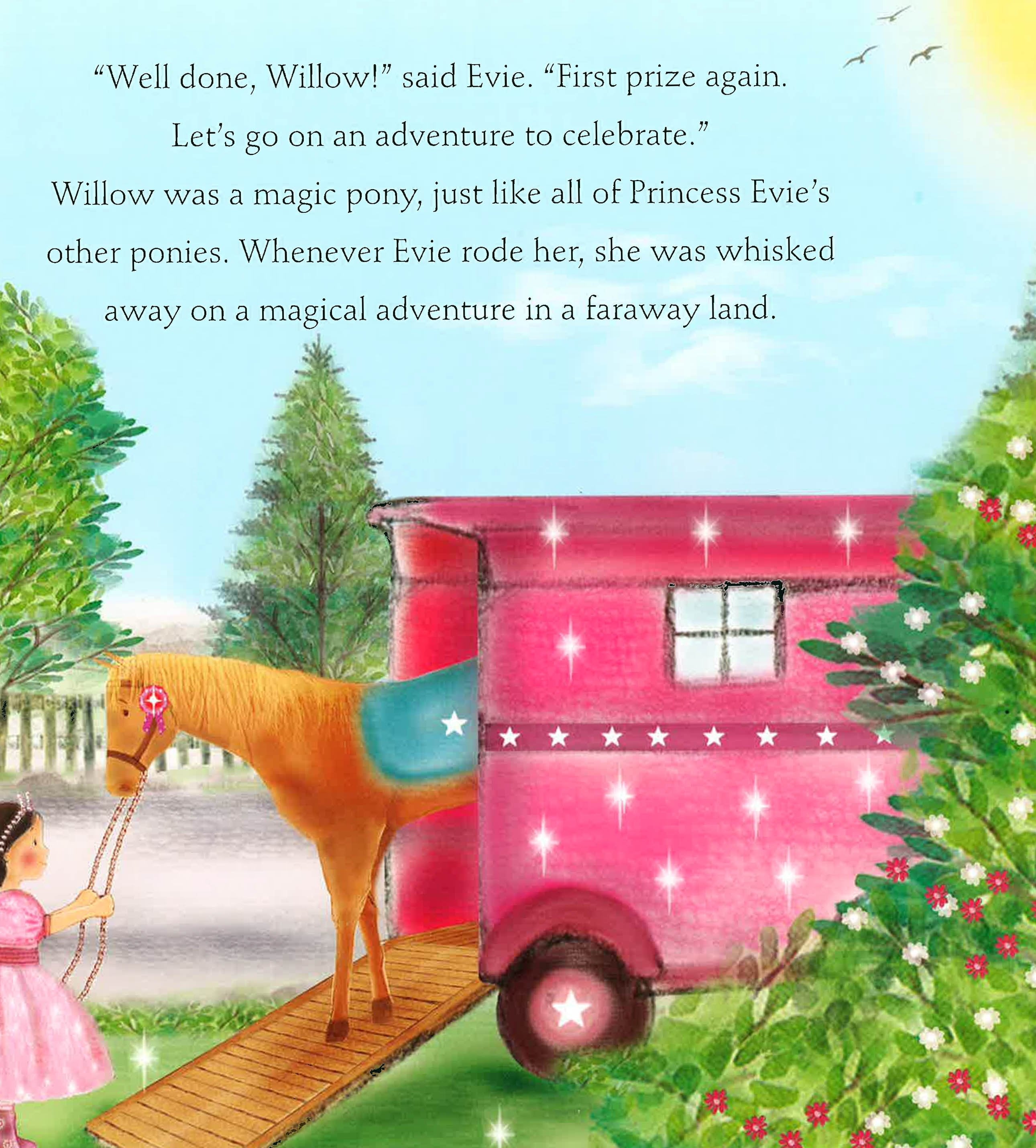 A beautiful new reissue of this much-loved series, with brilliant press-out pieces and a dressing-up element so you can join Princess Evie and her ponies on their magical adventures! Princess Evie is crazy about her ponies. But Princess Evie's ponies aren't like any other ponies - oh no! Her ponies are magic ponies and, whenever Princess Evie rides them, she is whisked away on a magical adventure in a faraway land . . . In this adventure, Princess Evie and Sparkles the kitten are carried away on the back of Willow the Magic Forest Pony! They soon arrive in Bluebell Forest where they help the forest fairies to discover who has stolen all the outfits for the Fairy Fashion Show!