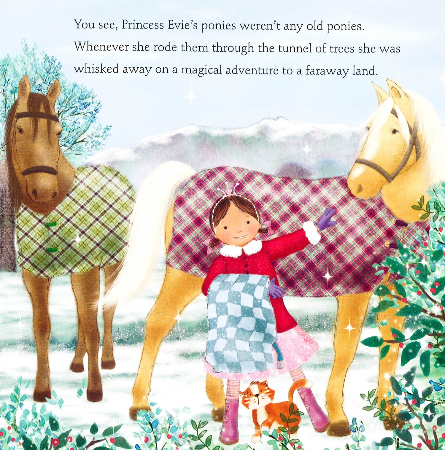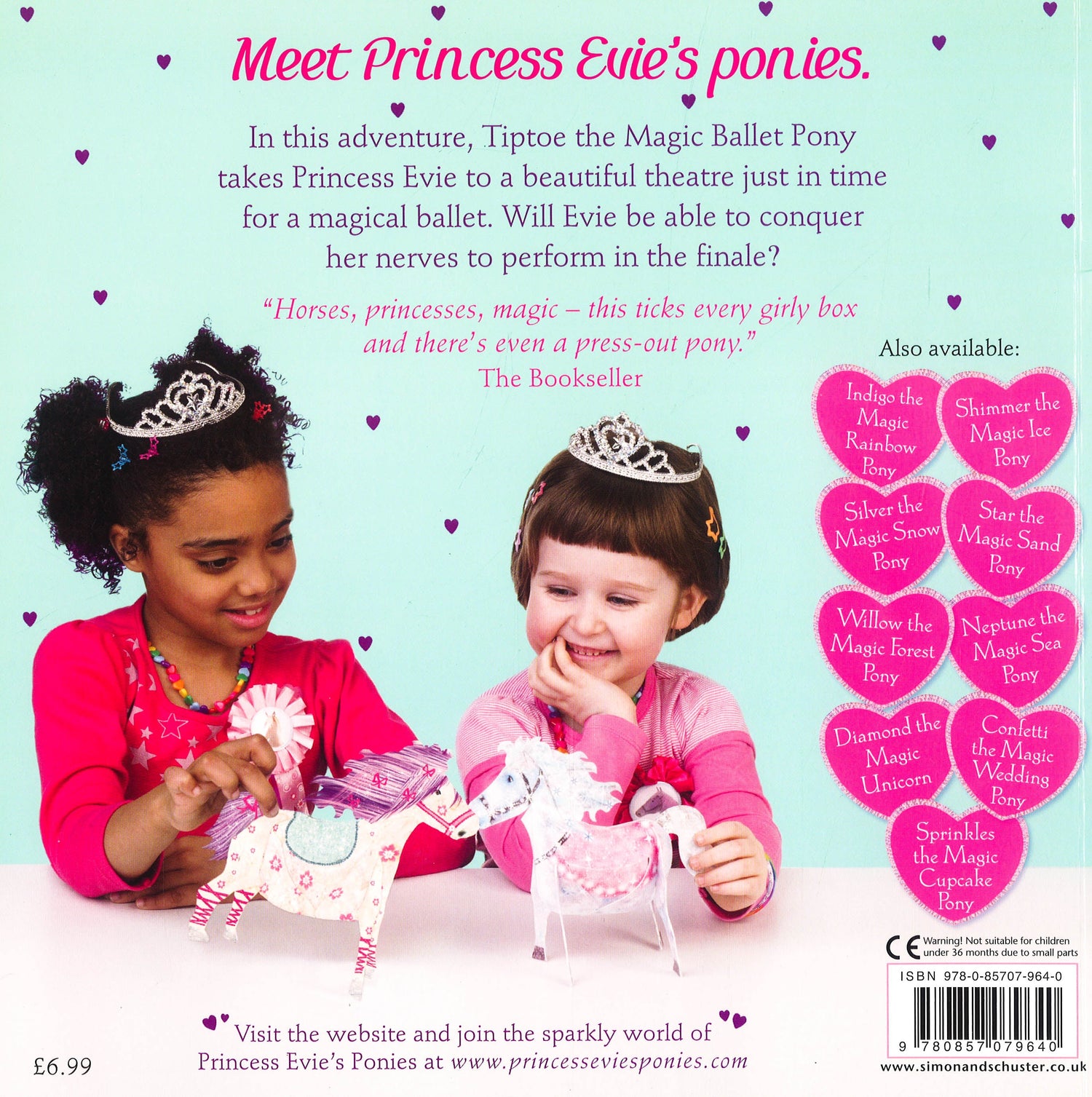 Princess Evie is crazy about her ponies. But Princess Evie's ponies aren't like any other ponies - oh no! Her ponies are magic ponies and, whenever Princess Evie rides them, she is whisked away on a magical adventure in a faraway land ...Princess Evie and Sparkles, the kitten, join in a snowy ballet show. Will Evie be able to face her stage fright and perform with the Sugar Plum Fairy? Find out in this beautiful adventure and then play with the free pop-up pony. With over 900,000 copies of this series sold worldwide, Princess Evie continues to go from strength to strength. Join her as she is whisked away on a magical adventure on the back of Tiptoe the Magic Ballet Pony.