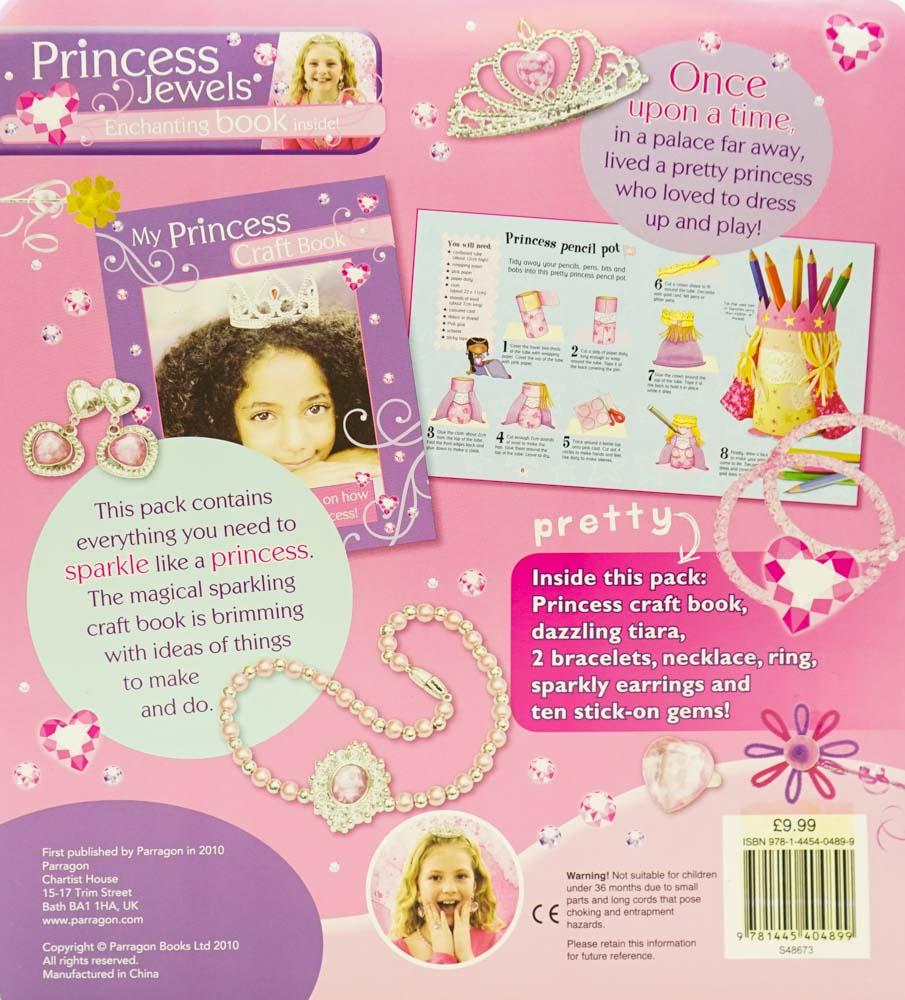 The perfect pack for every little princess, this pack contains everything you need to sparkle like a princess. The magical sparkling craft book is brimming with ideas for things to make and do With a tiara, 2 bracelets, ring, earrings, ten stick-on gems and a princess craft book