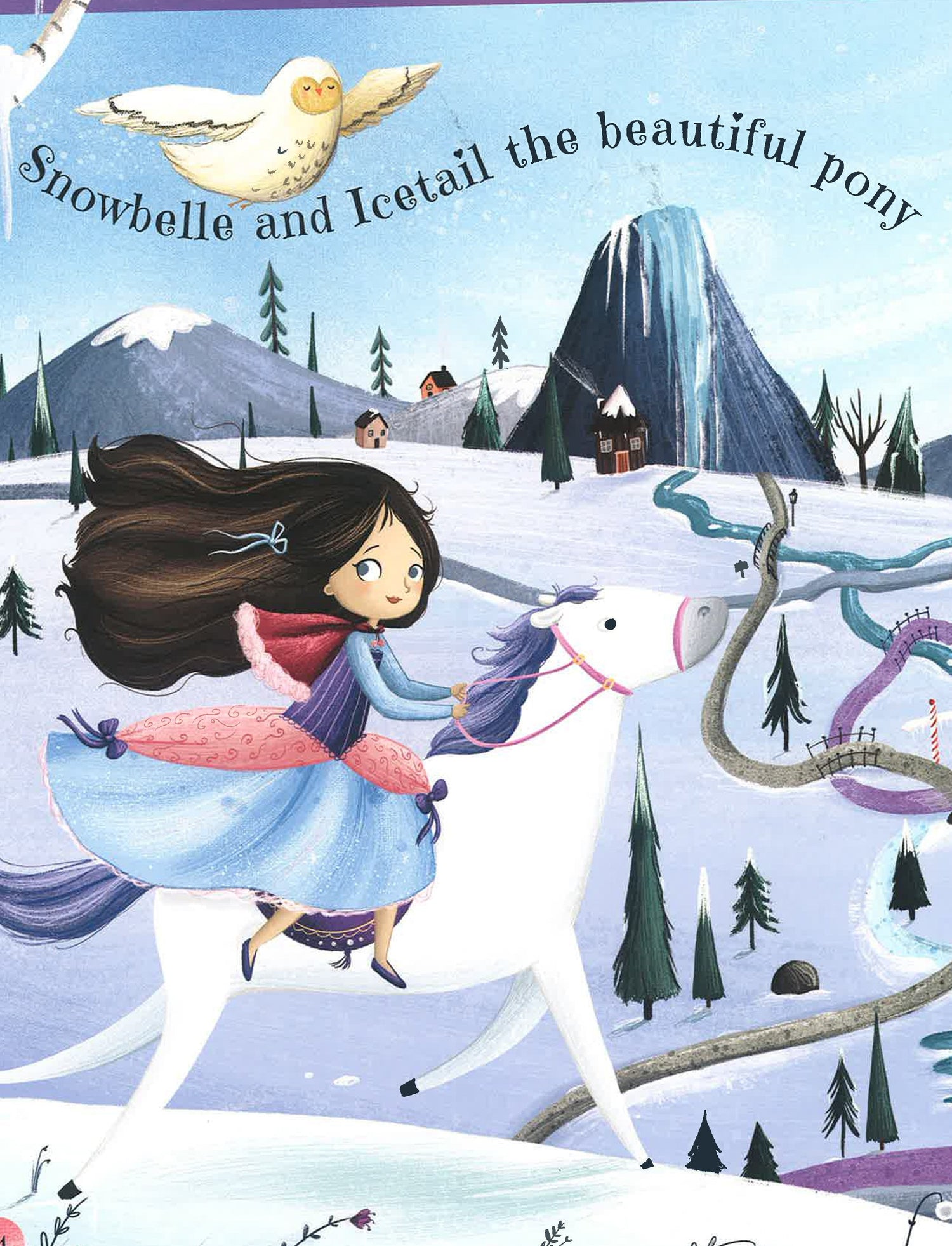 Far away, in a castle that glistens as white as snow, lives the beautiful Princess Snowbelle. When she's not out exploring the enchanted wood with her pony Icetail, she's attending royal snow balls with her family or gliding over the frozen lake on ice skates with her best friends.
