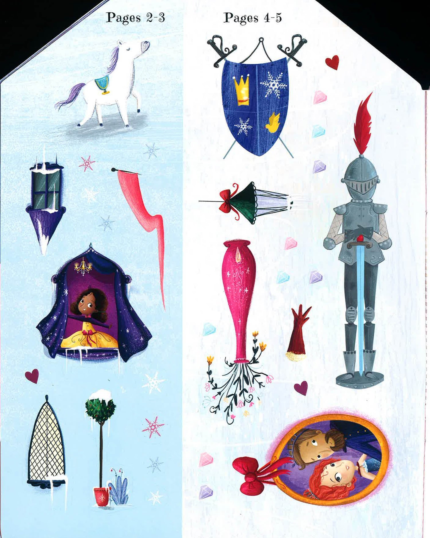 Welcome to Princess Snowbelle's snowy white castle! There's a ballroom for dancing, a grand dining hall for feasting, a stable for riding horses and many other places to explore. But, all of the rooms are empty - it's up to you to decide what happens inside!