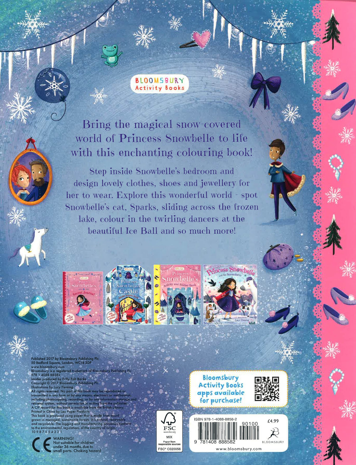 Join Snowbelle and Icetail on their adventures with this stunning colouring book. Step inside Snowbelle's bedroom and design lovely clothes, shoes and jewellery for her to wear or take a trip to the frozen lake and whiz around on ice skates. There are lots of little things to spot and find as you go along, too!