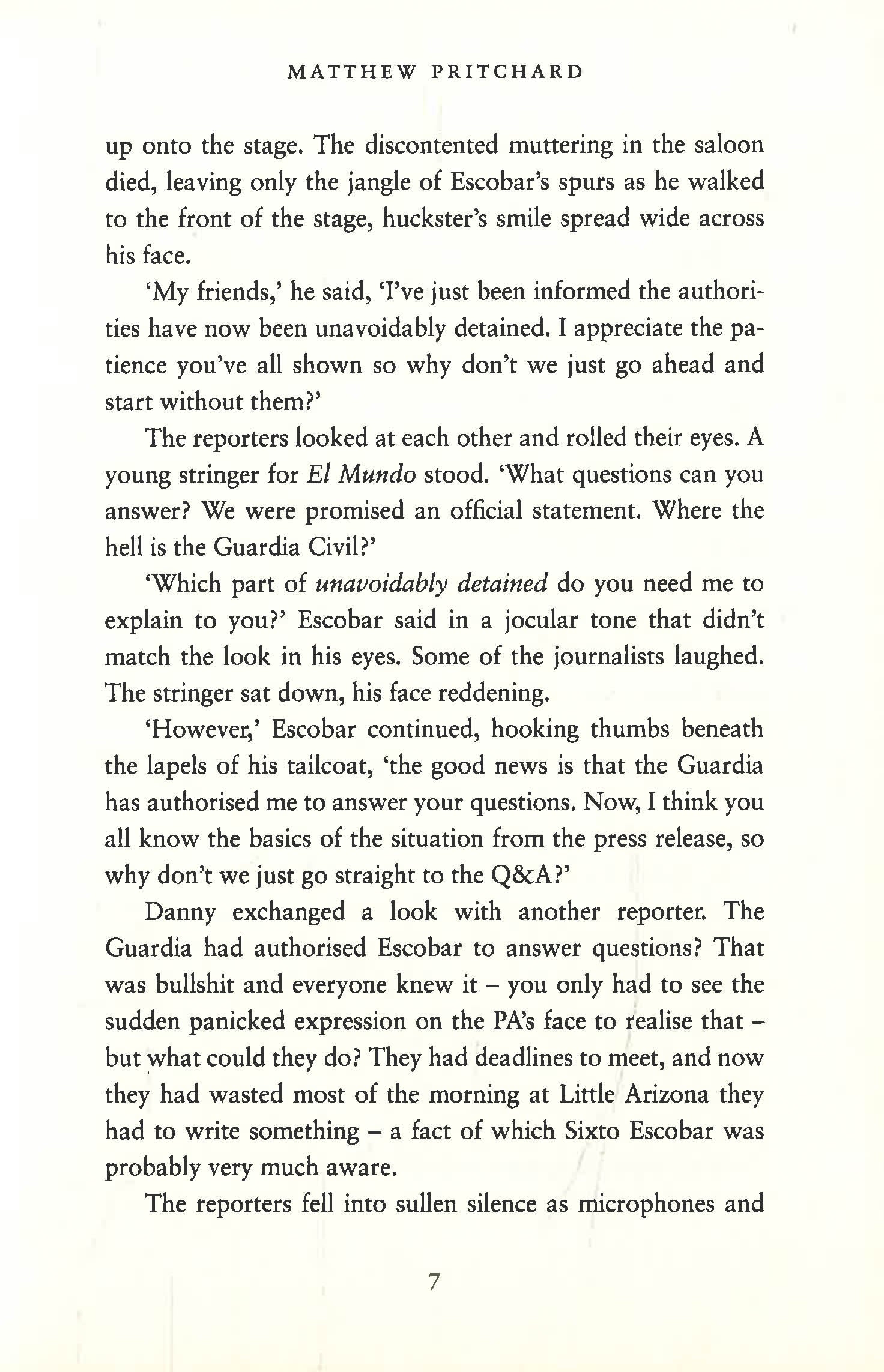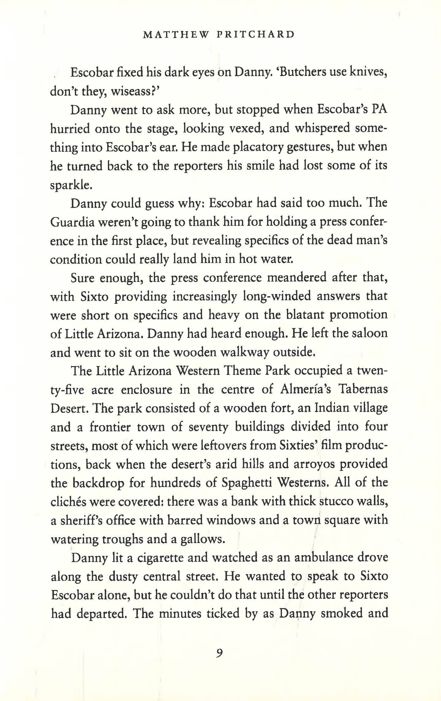 The discovery of a disinterred corpse at one of Andalusia's Spaghetti Western theme parks begins Danny Sanchez on an investigation that will put all that he holds dearest on the line, as he brings to light an act of unimaginable selfishness that will have ramifications for thousands...Danny begins the story on the trail on a brutal killer who burns his first victim alive, but as the plot unfolds, he begins to realise the true motives behind the killer's actions and to question whether the man he is tracking is the true villain. The story draws on Pritchard's own journalistic experience to present a vivid and realistic portrayal of the way in which Danny draws together the documents and interviews he needs to prove his story. Meanwhile, Danny's obsessive quest to uncover the truth causes him to place not only his own life at risk, but also those of Marsha, his girlfriend, and his photographer friend, Paco Pino. This leads to a breakdown in all the relationships which Danny most values. Broken Arrow is Pritchard's third novel and combines his fast-paced prose style and subtle characterisation with a meticulously researched plot. The book is based around a real life accident in 1966, in which the American air force dropped three H-bombs onto southern Spain and contaminated hundreds of acres of arable land with plutonium dust. The narrative moves with a Chandleresque efficiency and there are many twists to the plot, but all are credible. Matthew Pritchard keeps his readers guessing until the end.