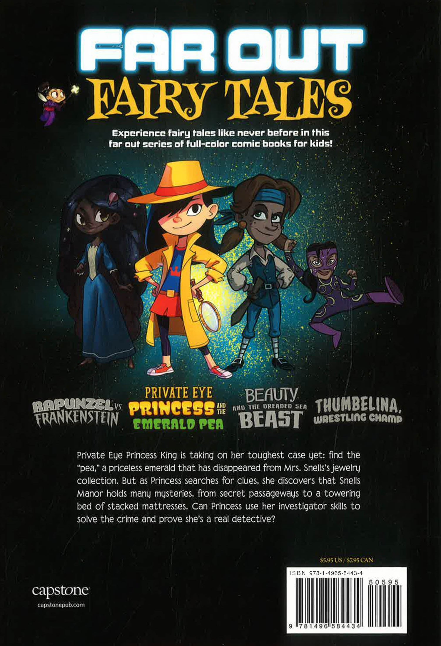 Detective Princess King is taking on her toughest case yet: find the pea a priceless emerald that's disappeared from Mrs. Snell's jewelry collection. But as Princess searches for clues, she discovers that Snell Manor holds many mysteries -- from secret passageways to a towering bed of stacked mattresses. Can Princess use her sleuthing skills to solve the crime and prove she's the best private investigator in town? Experience Hans Christian Andersen's classic The Princess and the Pea like never before in this graphic novel retelling for kids. Each Far Out Fairy Tales adventure includes info on the original tale, a guide to the story's twists, and visual discussion questions to critically engage readers.