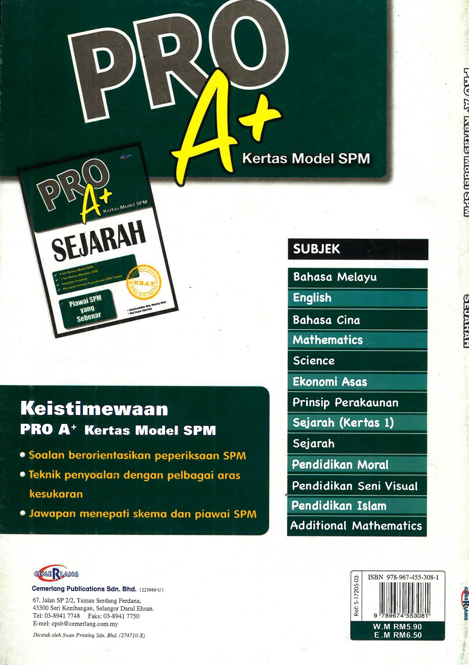 Soalan berorientasikan peperiksaan SPM dan teknik penyoalan dengan pelbagai aras kesukaran. Jawapan menepati skema dan piawaian SPM.