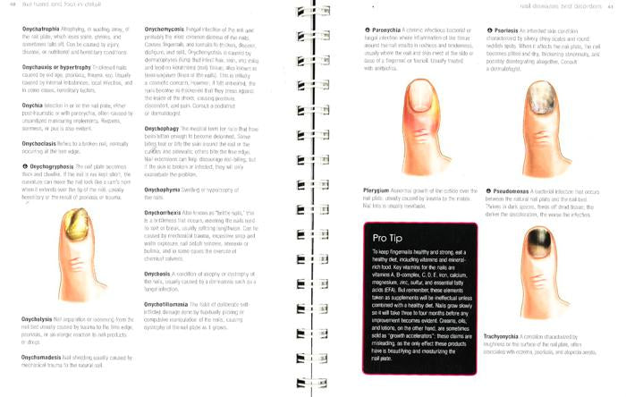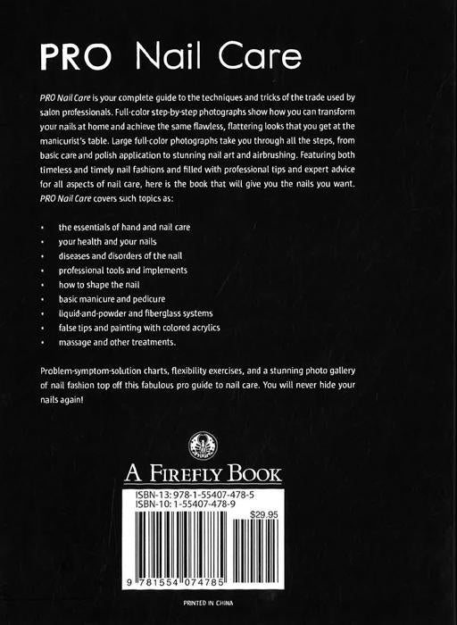 The indispensable guide to nails suitable for every skill level. The care and creation of professional-looking fingernails is big business. This comprehensive guide covers everything from basic at-home nail care and the history of nail polish to how to set up a salon and master advanced techniques. Leigh Toselli provides expert guidance for both novices and professional technicians. Detailed instructions and color photographs cover: Equipment and tools, including solvents and adhesives Nail tips, wraps, acrylic nails and gels French manicures, nail art gems, gold leaf, airbrushing and stencils Nail and hand structure Nail disorders, conditions and diseases, including brittle nails, hangnails, white spots and fungal infections Skin conditions and joint problems, such as eczema, warts and arthritis. Toselli also provides step-by-step instructions for manicures and pedicures, including water manicures, hot oil manicures and paraffin wax procedures. She also includes information on hazards and precautions as well as massage tips. Complemented by more than 500 inspiring color photographs, "Pro Nail Care" is the complete guide to nail care.