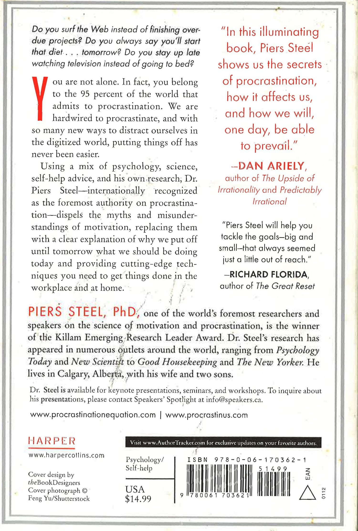 Do you surf the Web instead of finishing overdue projects? Do you always say youll start that diet . . . tomorrow? Do you stay up late watching television instead of going to bed? You are not alone. In fact, you belong to the 95 percent of the world that admits to procrastination. We are hardwired to procrastinate, and with so many new ways to distract ourselves in the digitized world, putting things off has never been easier. Using a mix of psychology, science, self-help advice, and his own research, Dr. Piers Steel - internationally recognized as the foremost authority on procrastination - dispels the myths and misunderstandings of motivation, replacing them with a clear explanation of why we put off until tomorrow what we should be doing today and providing cutting-edge techniques you need to get things done in the workplace and at home.