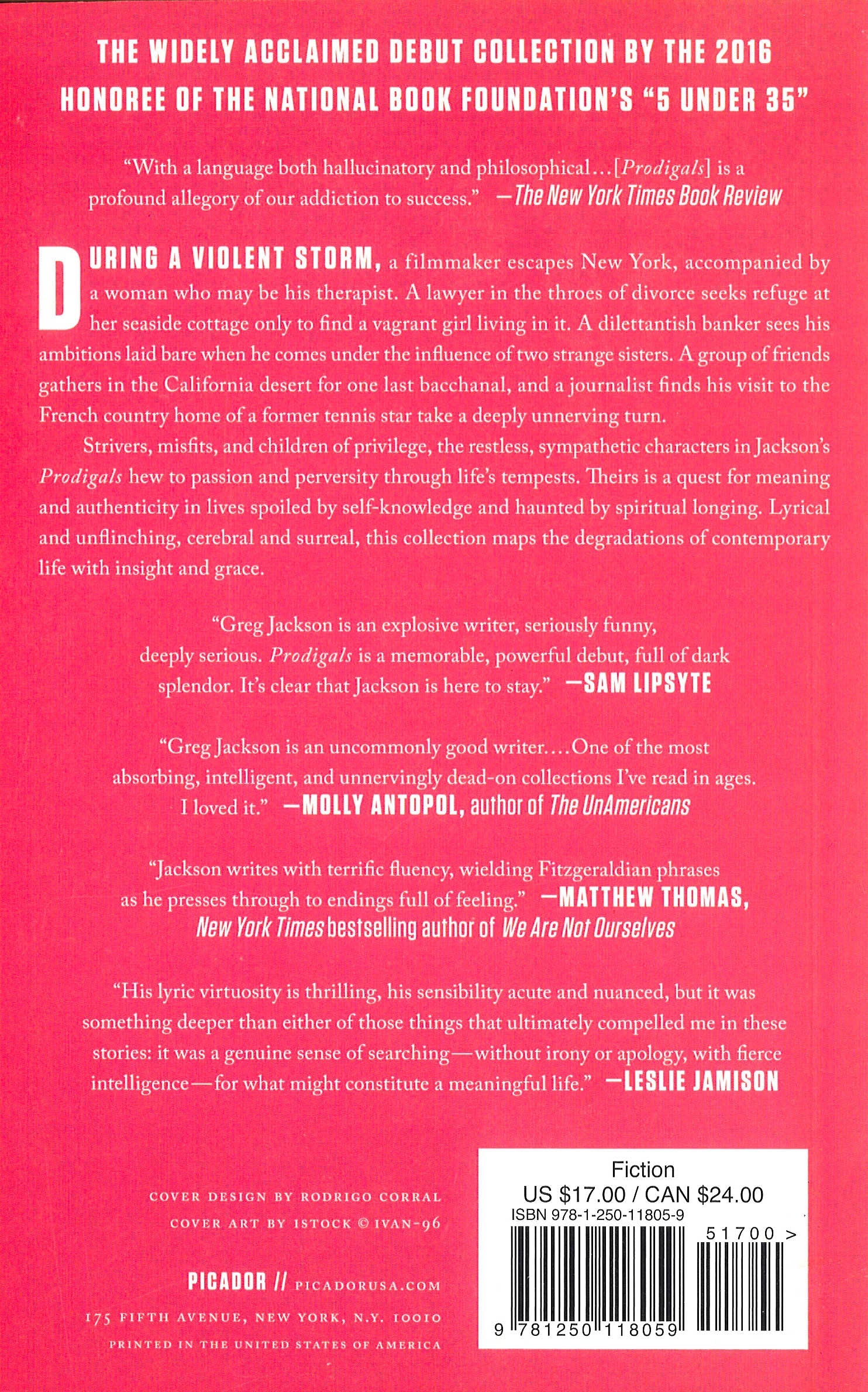 During a violent storm, a filmmaker escapes New York, accompanied by a woman who may be his therapist. A lawyer in the throes of divorce seeks refuge at her seaside cottage only to find a vagrant girl living in it. A dilettantish banker sees his ambitions laid bare when he comes under the influence of two strange sisters. A group of friends gathers in the California desert for one last bacchanal, and a journalist finds his visit to the French country home of a former tennis star take a deeply unnerving turn. Strivers, misfits, and children of privilege, the restless, sympathetic characters in Jackson's stellar short story collection, Prodigals, hew to passion and perversity through life's tempests. Theirs is a quest for meaning and authenticity in lives spoiled by self-knowledge and haunted by spiritual longing. Lyrical and unflinching, cerebral and surreal, this collection maps the degradations of contemporary life with insight and grace.