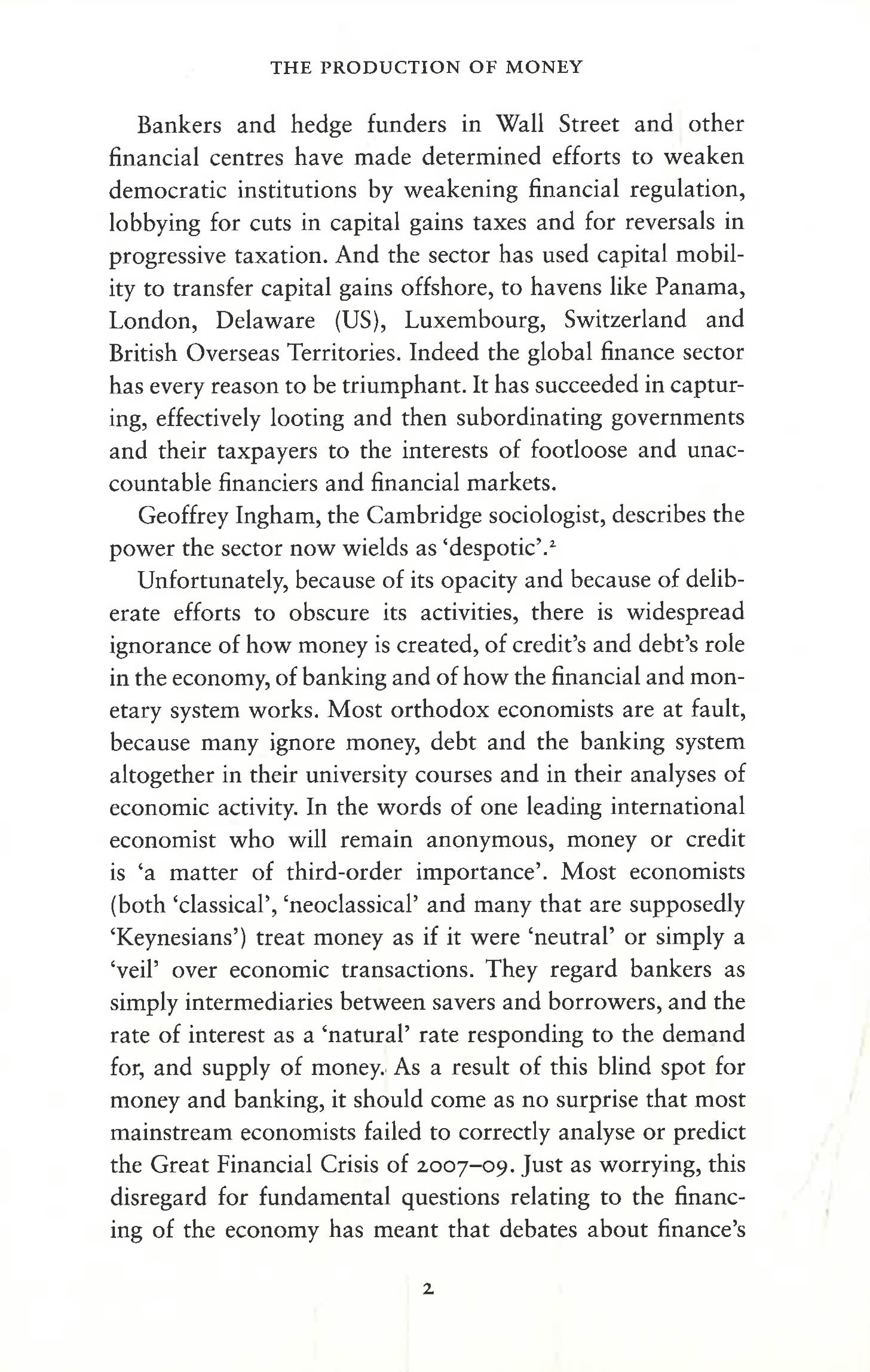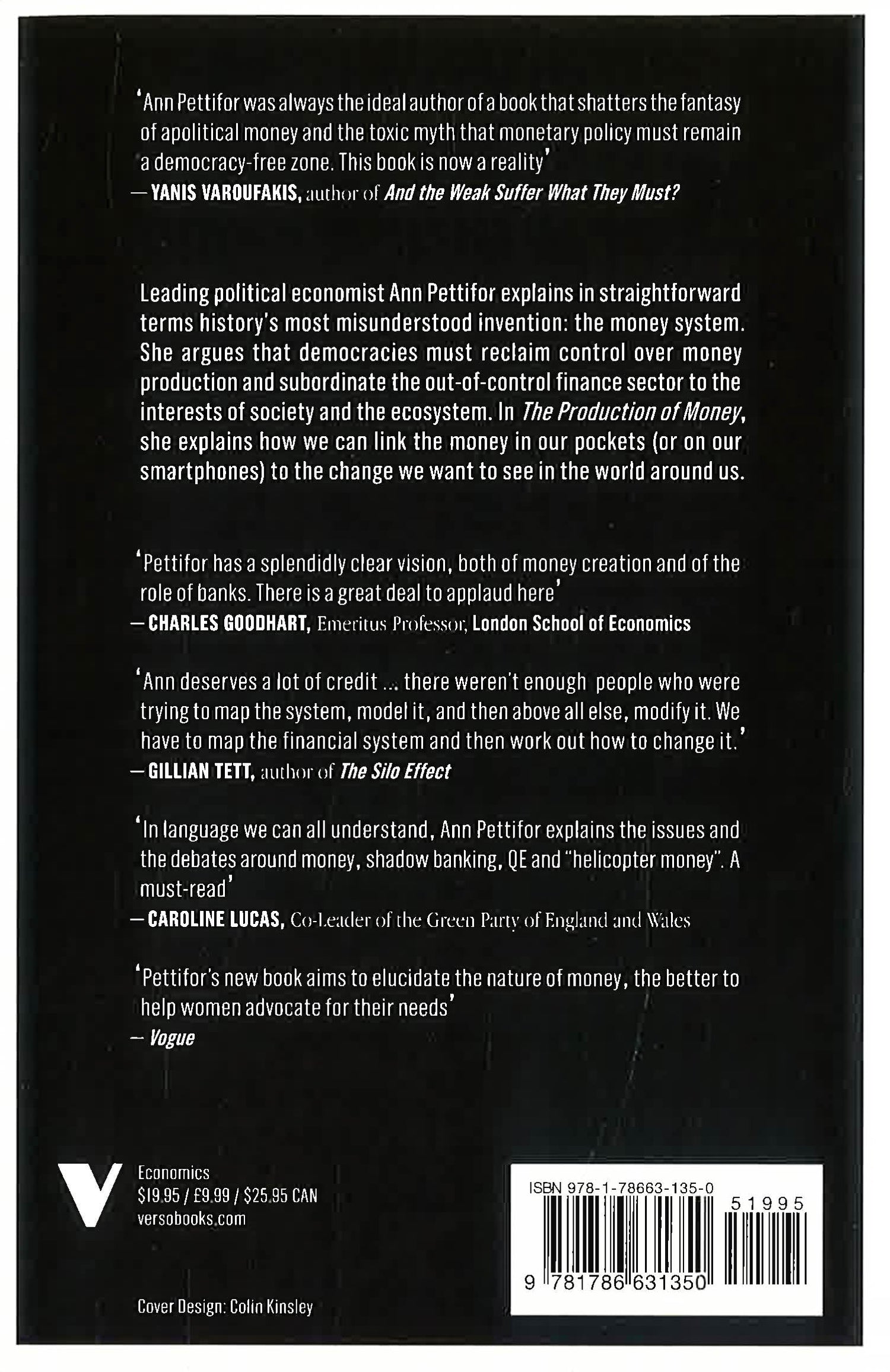 The Production of Money examines and assesses popular alternative debates on, and innovations in, money, such as “green QE” and “helicopter money.” She sets out the possibility of linking the money in our pockets (or on our smartphones) to the improvements we want to see in the world around us.