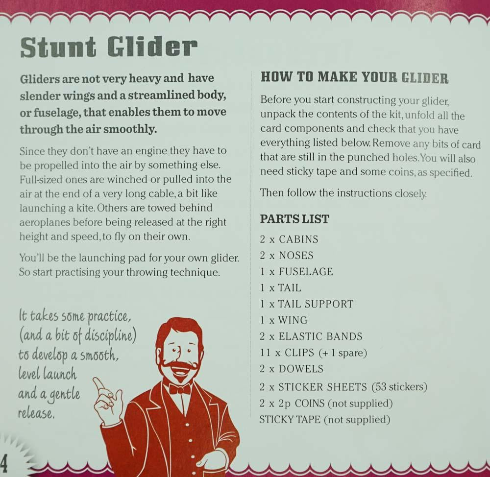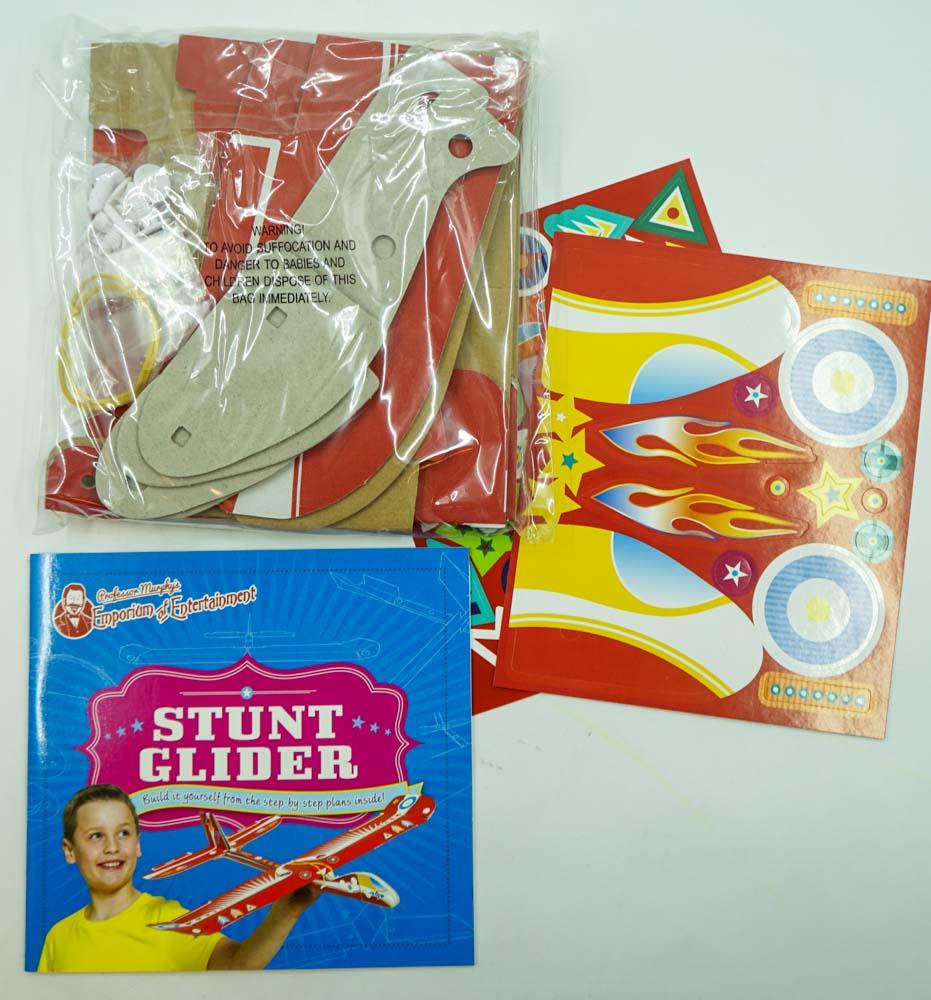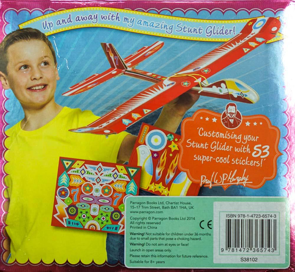 Take to the skies with Professor Murphys awe-inspiring stunt glider. Inside you will find everything you need to build yourself a 2 foot stunt glider with an incredible 60cm wingspan. This pack contains A step-by-step book 24 pieces to construct your stunt glider and 2 x sticker sheets. Great outdoor fun for ages 8+ build throw fly loop and glide Also available in Professor Murphys Emporium of Entertainment Optical Illusions Juggling Balls.