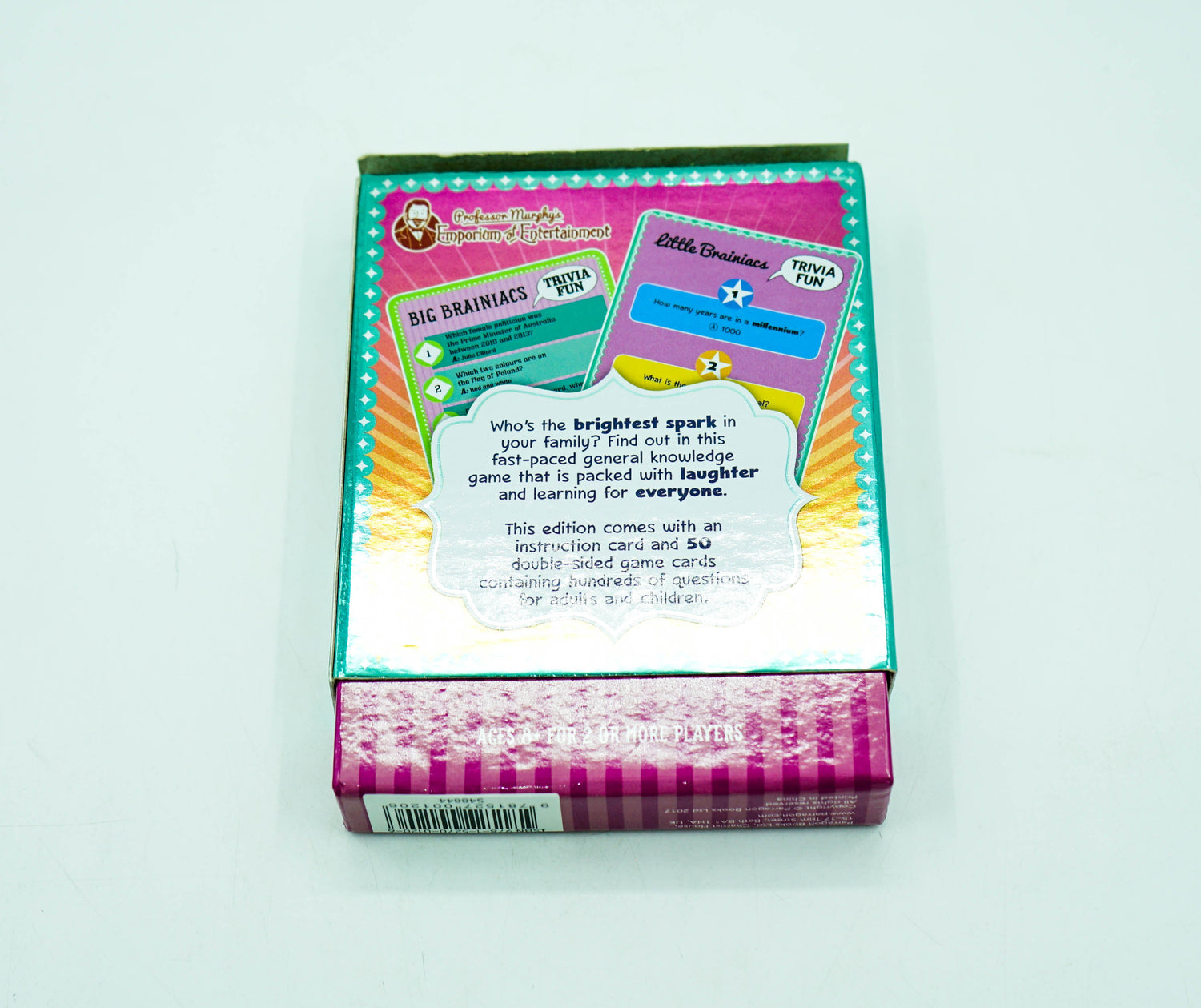 The game pack comes with an instruction card and 50 double-sided game cards containing hundreds of questions for adults and children. This fun, learning game is for ages 8 and up, and for 2 or more players.
