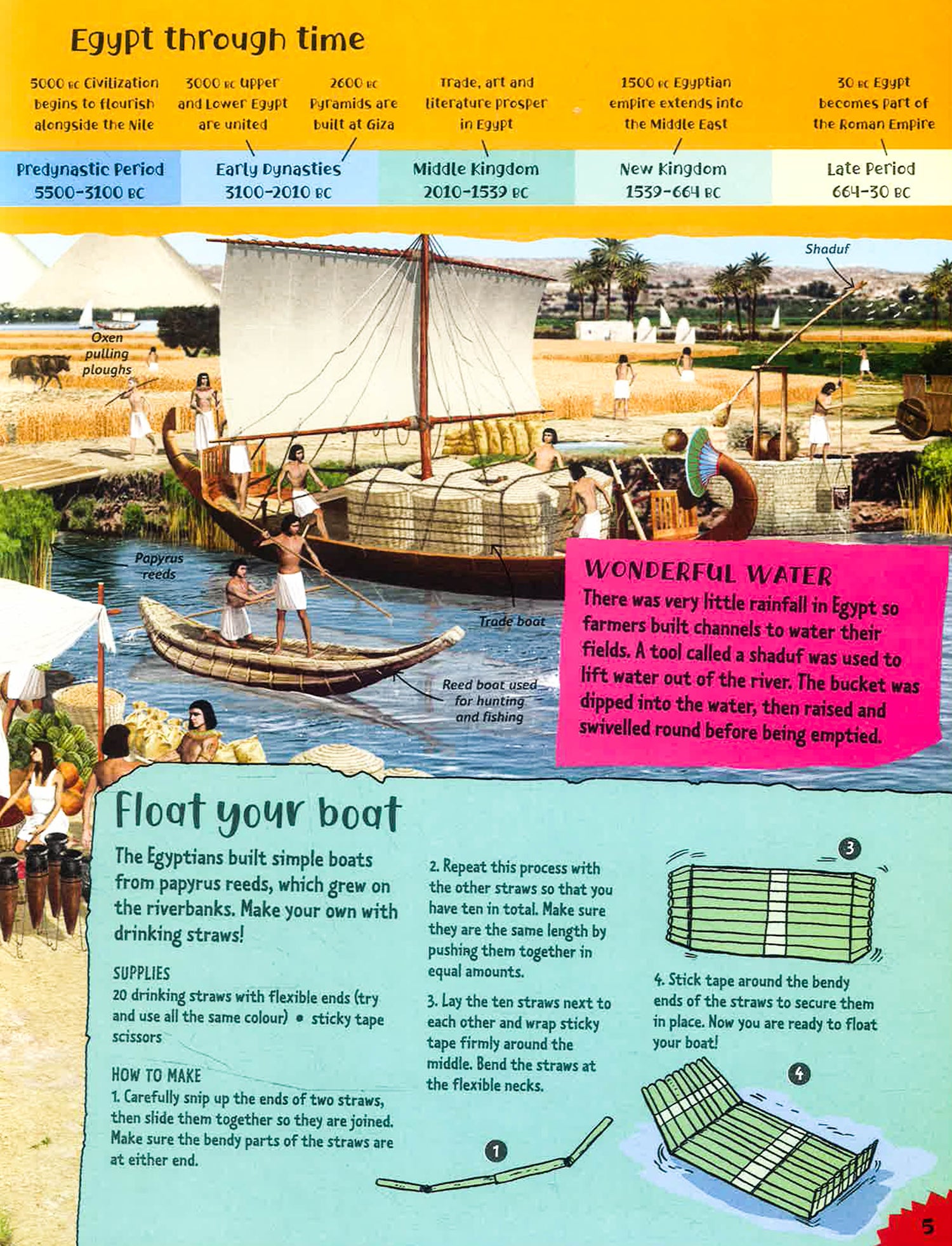 Packed with super-cool facts and hands-on activities, Project Ancient Egypt helps children to really engage with a core topic. From the importance of the Nile, to education, housing and mummification, each spread features photos, stunning artwork and fun cartoons. Step-by-step illustrated projects throughout encourage practical learning - readers can play an ancient game, make Egyptian sweets, and construct a model pyramid.