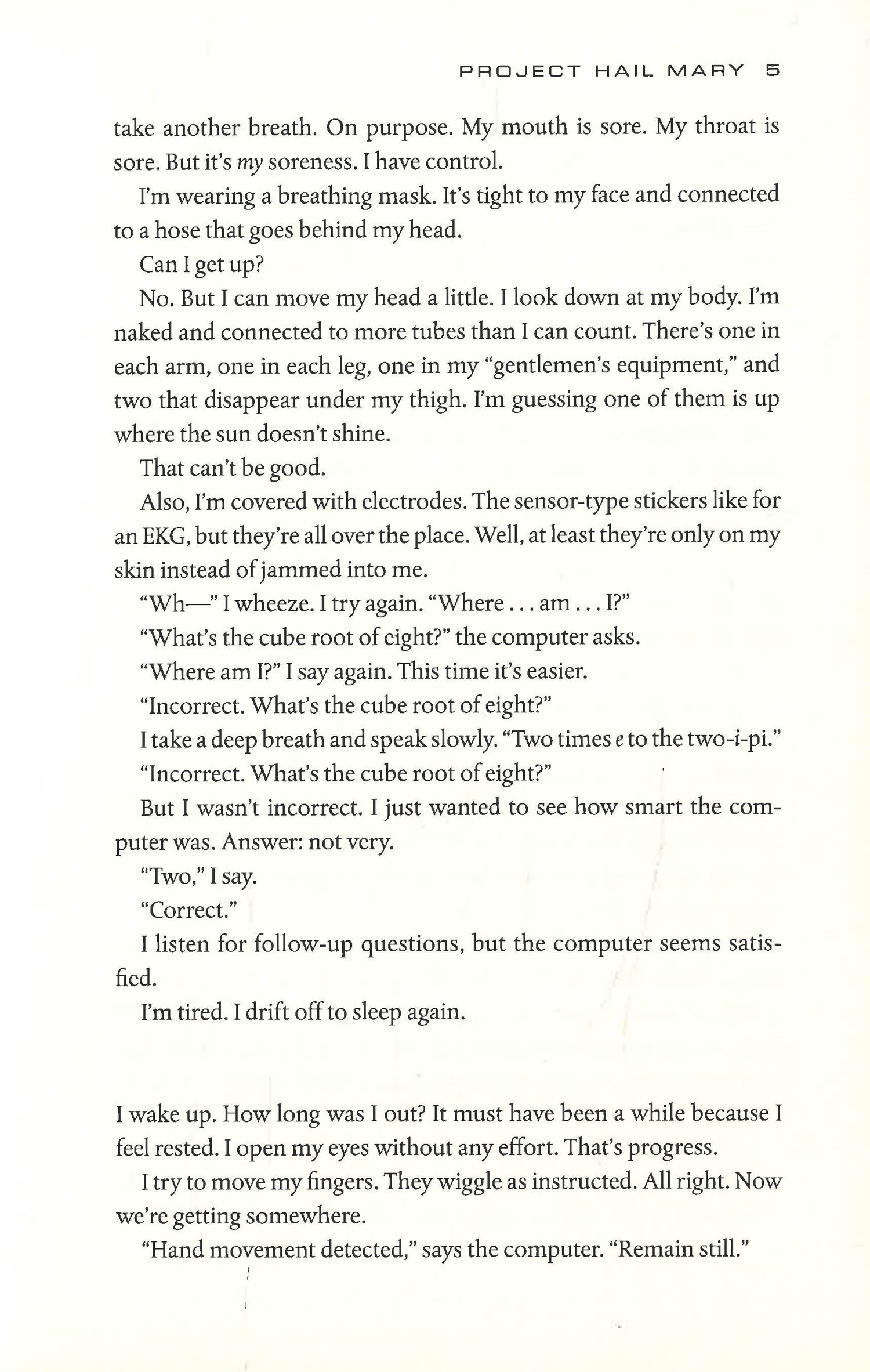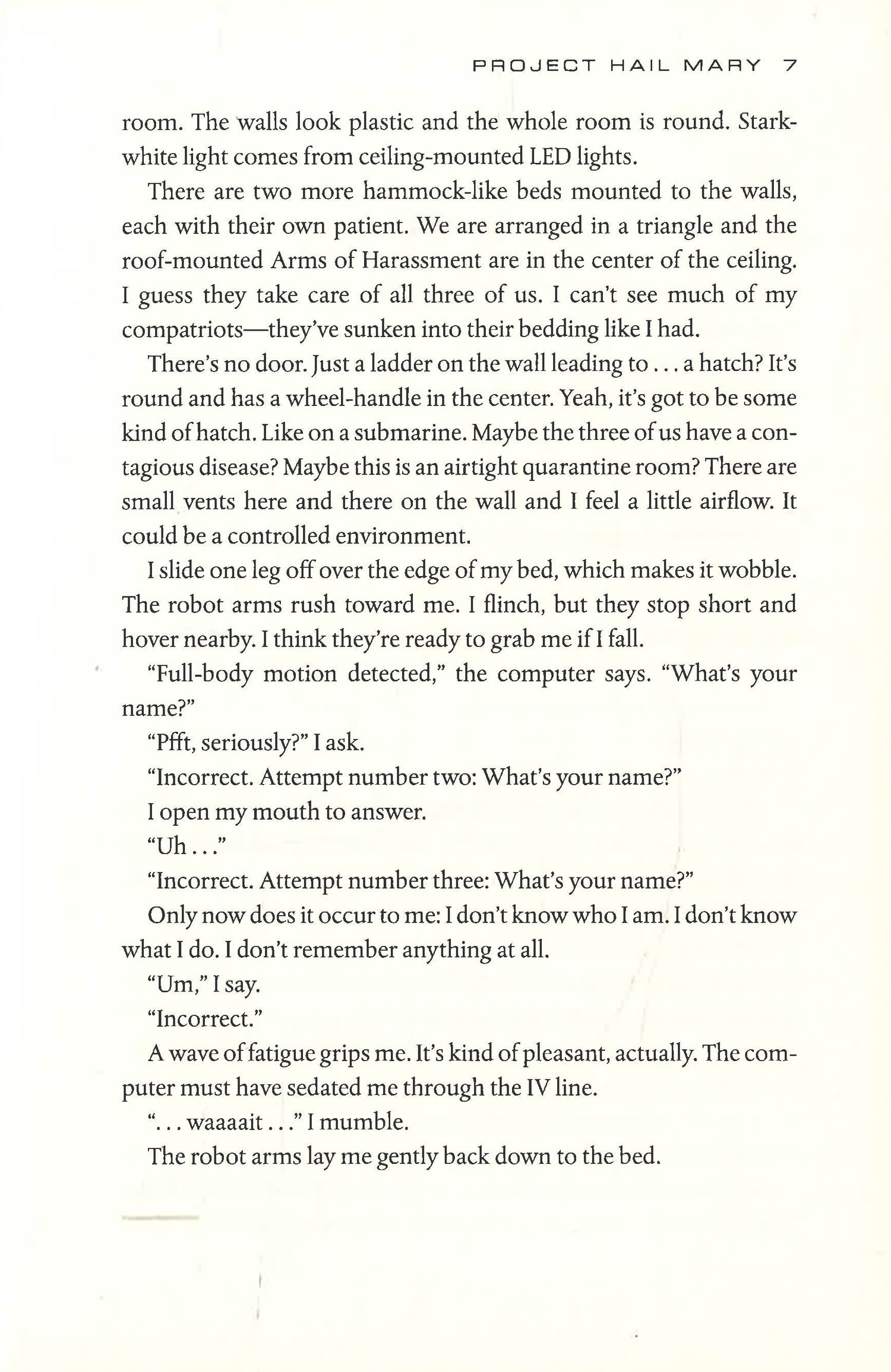 His crewmates dead, his memories fuzzily returning, Ryland realizes that an impossible task now confronts him. Hurtling through space on this tiny ship, it's up to him to puzzle out an impossible scientific mystery-and conquer an extinction-level threat to our species.