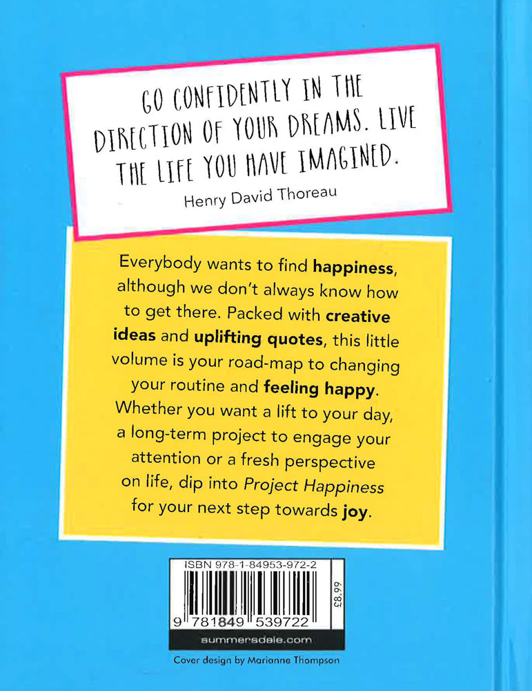 Go confidently in the direction of your dreams. Live the life you have imagined. Henry David Thoreau Everybody wants to find happiness, although we don't always know how to get there. Packed with creative ideas and uplifting quotes, this little volume is your road-map to changing your routine and feeling happy. Whether you want a lift to your day, a long-term project to engage your attention or a fresh perspective on life, dip into Project Happiness for your next step towards joy.