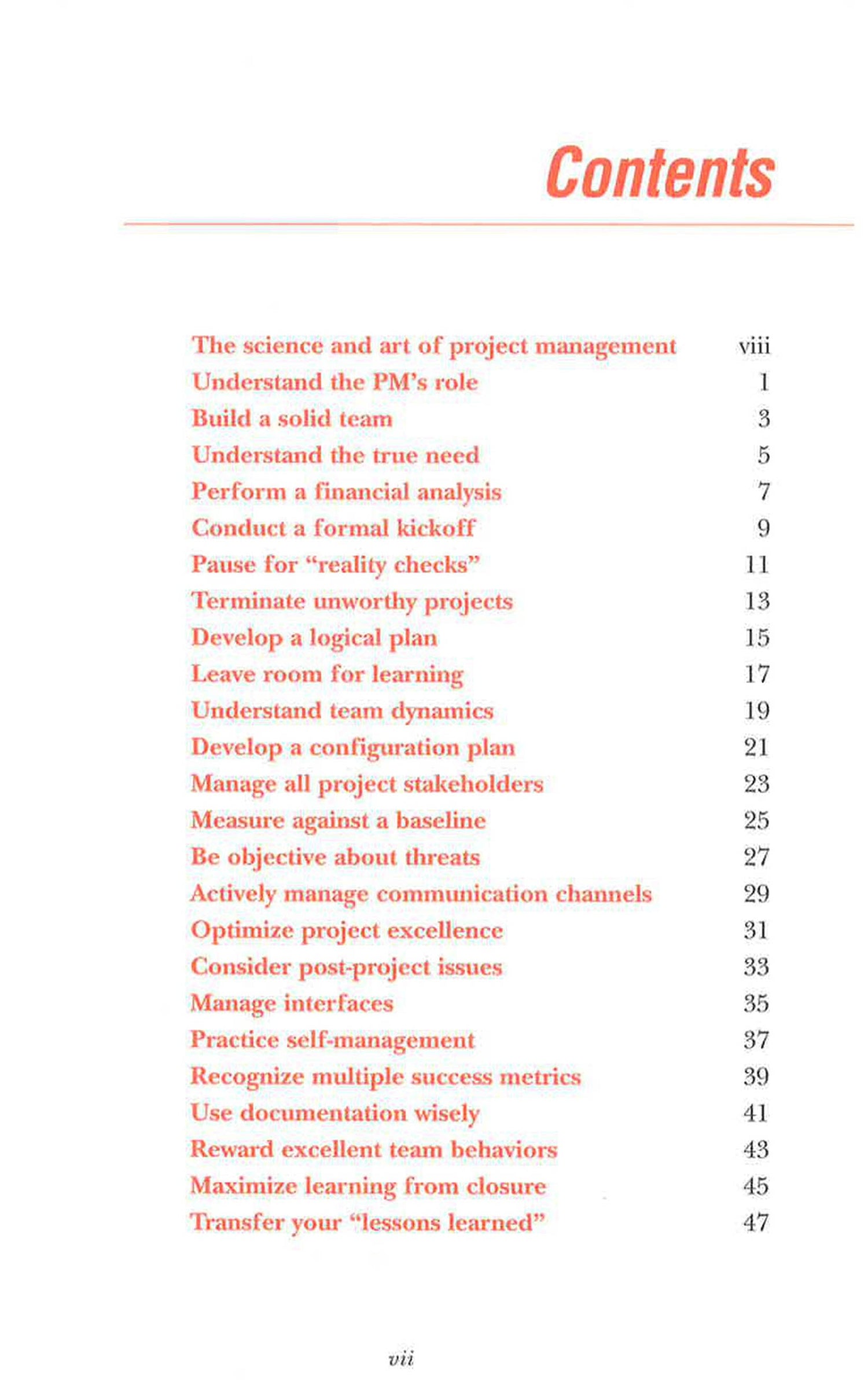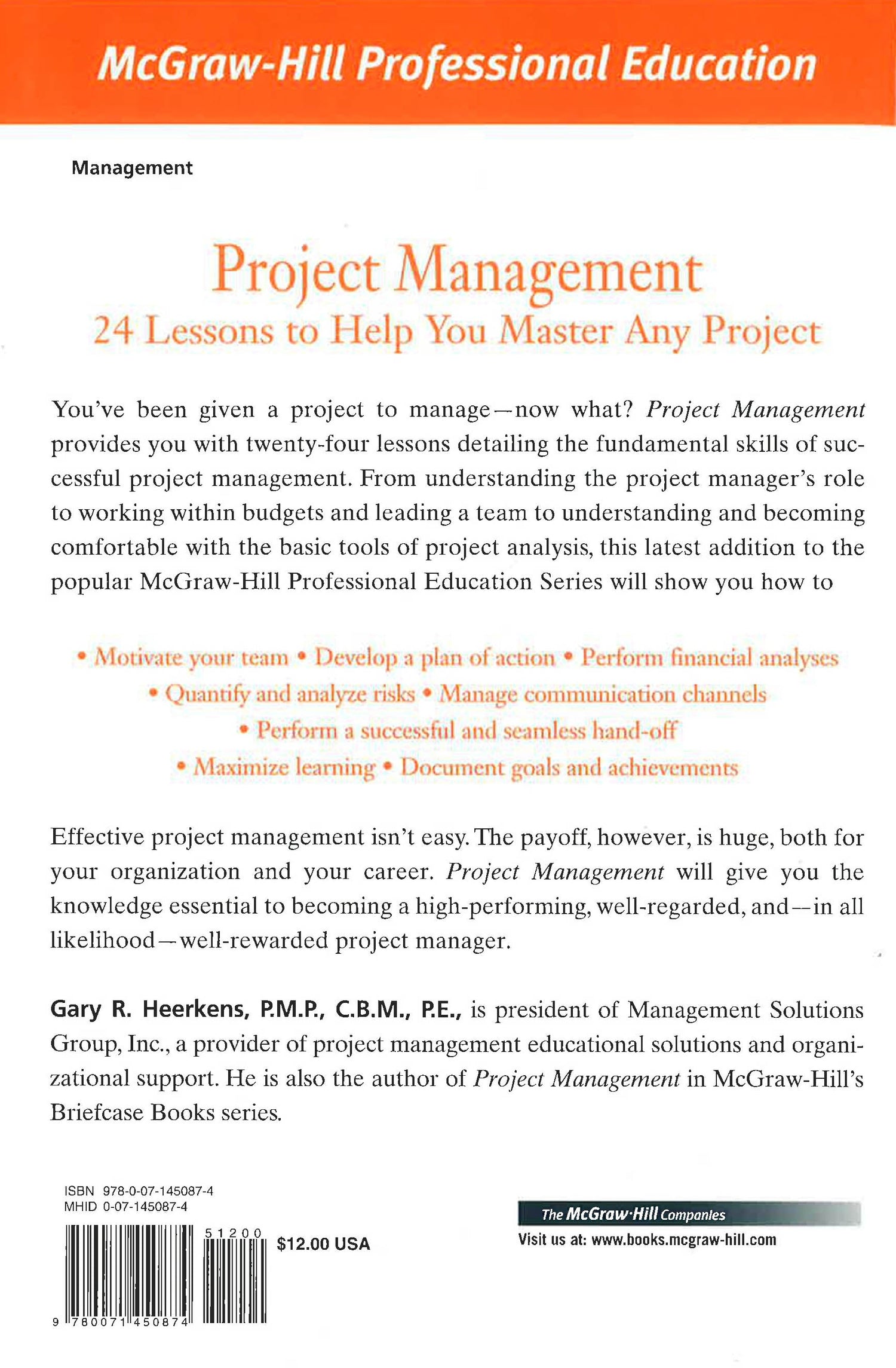 Project Management reviews the steps in organizing and managing projects, from how to build a realistic schedule to how to measure both success and failure. A concise and accessible, yet authoritative, guide to a topic in which books are more often lengthy and technical, Project Management discusses team building, timing, the planning process, estimating project costs, managing project interfaces, the four stages of risk management, and more.