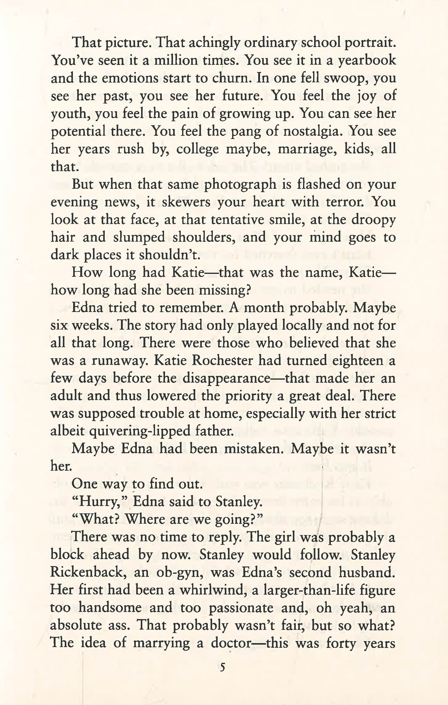 It began with a phone call... Has he now made a promise he can't keep? A gripping Myron Bolitar novel from the SUNDAY TIMES bestselling author of SIX YEARS.The 2am phone call is from a young, frightened, lost girl who has called the one adult who had promised to help her if she ever got into any trouble: Myron Bolitar. But his help proves not to be enough. He picks her up from a cold street corner and - against his better judgment - is persuaded to drop her at an unknown address. This is a mistake that he lives to regret, for Aimee Biel's final wave from a darkened porch turns out to be the last time anyone will see her...Driven by guilt and the desperation of her family, Myron decides to break his vow of six years and get involved in the search. But his past will not be buried so easily ... and Myron must decide once and for all what he will stand up for if he is to have any hope of rescuing both Aimee and himself.