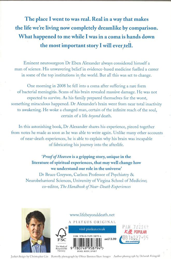 Internationally acclaimed neurosurgeon Dr Eben Alexander always considered himself a man of science. His unwavering belief in evidence-based medicine fuelled a career in the top medical institutions of the world. But all this was set to change. One morning in 2008 he fell into a coma after suffering a rare form of bacterial meningitis. Scans of his brain revealed massive damage. Death was deemed the most likely outcome. As his family prepared themselves for the worst, something miraculous happened. Dr Alexander's brain went from near total inactivity to awakening. He made a full recovery but he was never the same. He woke certain of the infinite reach of the soul, he was certain of a life beyond death. In this astonishing book, Dr Alexander shares his experience, pieced together from the notes he made as soon as he was able to write again. Unlike other accounts of near-death experiences, he is able to explain in depth why his brain was incapable of fabricating the journey he experienced. His story is one of profound beauty and inspiration.