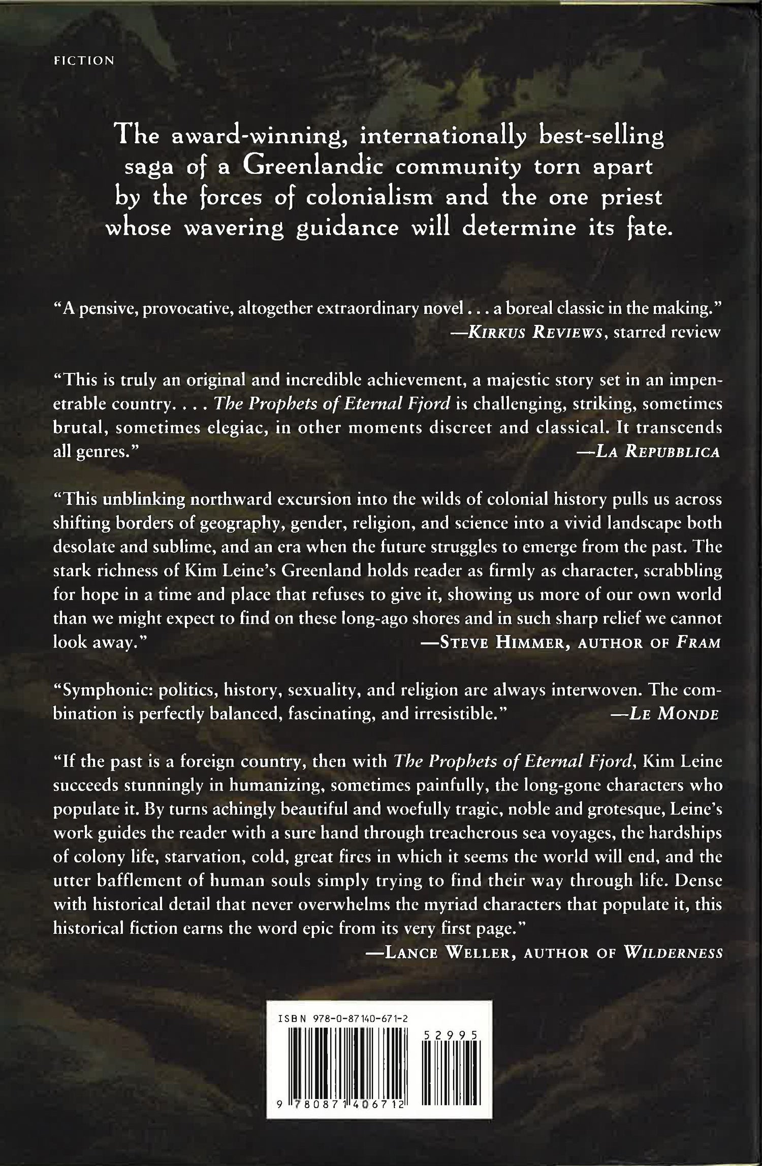 From the swarming streets of Copenhagen to the frozen villages of Greenland, The Prophets of Eternal Fjord is a grand, magisterial story of epic proportion. Earning rave reviews and scores of readers across the world, Kim Leine's masterpiece-sweeping across the sea in a whaler and scurrying, panicked, from the Great Fire of 1795-arrives on American shores erupting with pathos, lust, faith lost and found, and a cast of characters clinging to life amidst persecution and calamity. Idealistic, foolhardy Morten Falck, the hapless hero, is a newly ordained priest sailing to Greenland in 1787 to convert the Inuit to the Danish church. He's rejected the prospect of a sleepy posting in a local parish and instead departs for the forsaken Sukkertoppen colony, where he will endeavor to convert the locals. A town battered by unremittingly harsh winters and simmering with the threat of dissent, it is a far cry from the parish he envisioned; natives from neighboring villages have unified to reject colonial rule and establish their own settlement atop Eternal Fjord. A bumbling and at times terrifically destructive mix of Shakespeare's Falstaff and Nathaniel Hawthorne's Arthur Dimmesdale, he's woefully ill prepared to confront this new sect. Torn between his instinctive compassion for the rebel congregation perched atop Eternal Fjord and his duty to the church, Falck is forced to decide where he belongs. His exploits in this brutal backwater include an accidental explosion after a night curled around a keg, a botched surgery, a love affair with a solitary and fatalistic widow, and an apprenticeship with an eager young scholar that ends in tragedy. Based on authentic events in the 1780s and '90s, The Prophets of Eternal Fjord moves from the quiet rooms of the Copenhagen bourgeoisie to the stark, hardscrabble village of the Fjord where Falck finds himself-surprisingly-at home. Kim Leine's textured, earthy prose evokes the sting of the cold, the itch of the wool, and the burn of the roughest swig of aquavit. In gritty detail, Leine reveals the corrosive effects of colonial rule-both on the colonized, bitterly ground down as they are, and on the colonizers, compromised and corrupted by their baseless power. In rich, Dickensian descriptions, Leine charts the tragic events that intertwine seemingly disparate lives, illuminating the brutal and tender impulses of those seeking redemption and the shifting line between religion and mysticism. The Prophets of Eternal Fjord is a visceral panorama of a fragile colony caught in the throes of history, marking the American debut of a major international writer.