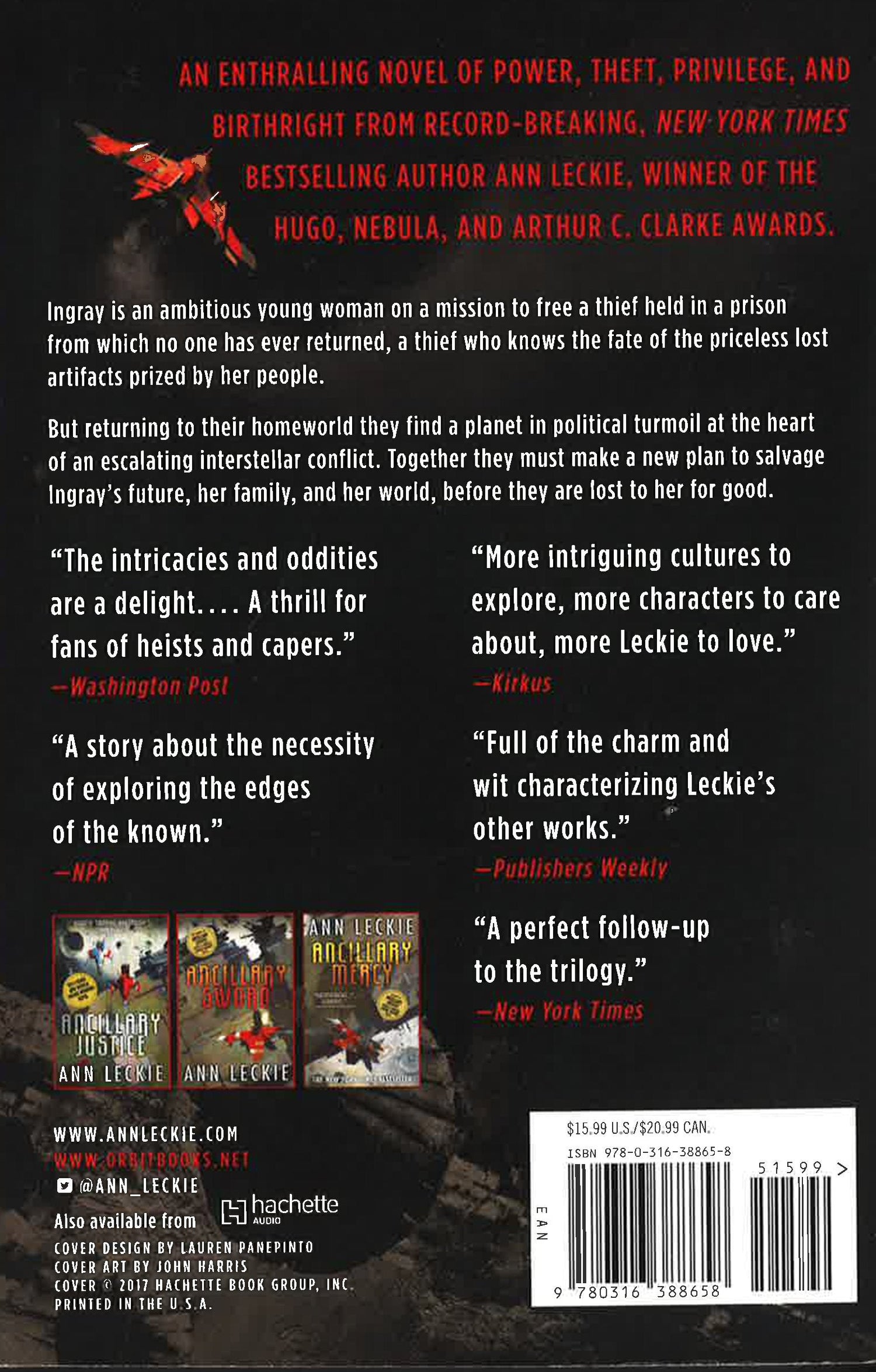 An ambitious young woman has just one chance to secure her future and reclaim her family's priceless lost artifacts in this stand-alone novel set in the world of Ann Leckie's groundbreaking, NYT bestselling Imperial Radch trilogy, which won the Hugo and Nebula awards. Though she knows her brother holds her mother's favor, Ingrid is determined to at least be considered as heir to the family name. She hatches an audacious plan -- free a thief from a prison planet from which no one has ever returned, and use them to help steal back a priceless artifact. But Ingray and her charge return to her home to find their planet in political turmoil, at the heart of an escalating interstellar conflict. Together, they must make a new plan to salvage Ingray's future and her world, before they are lost to her for good.