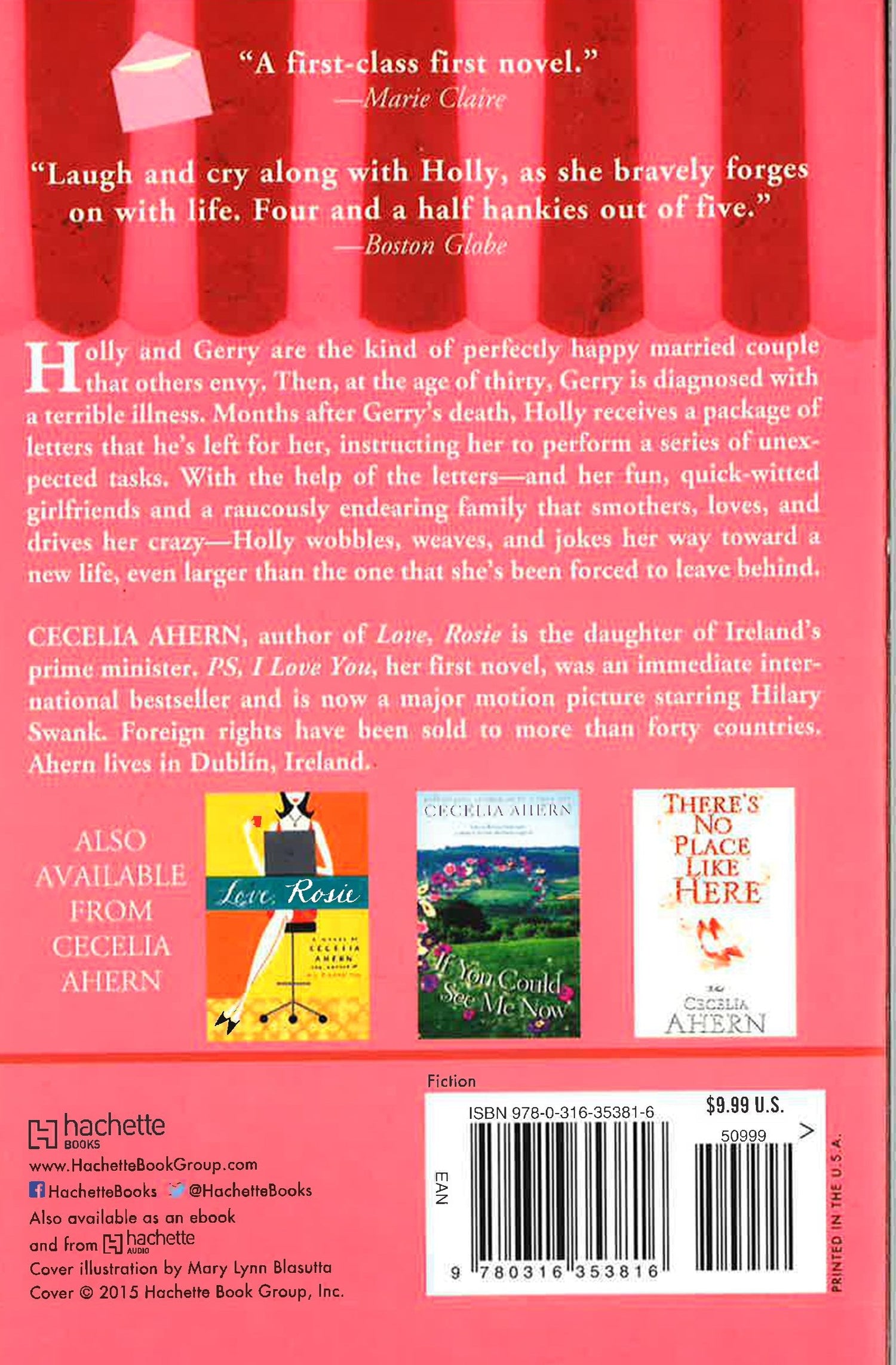 A novel about holding on, letting go, and learning to love again. Now in paperback, the endearing novel that captured readers' hearts and introduced a fresh new voice in women's fiction Cecelia Ahern. Holly couldn't live without her husband Gerry, until the day she had to. They were the kind of young couple who could finish each other's sentences. When Gerry succumbs to a terminal illness and dies, 30-year-old Holly is set a drift, unable to pick up the pieces. But with the help of a series of letters her husband left her before he died and a little nudging from an eccentric assortment of family and friends, she learns to laugh, overcome her fears, and discover a world she never knew existed. The kind of enchanting novel with cross-generational appeal that comes along once in a great while, PS, I Love You is a captivating love letter to the world!