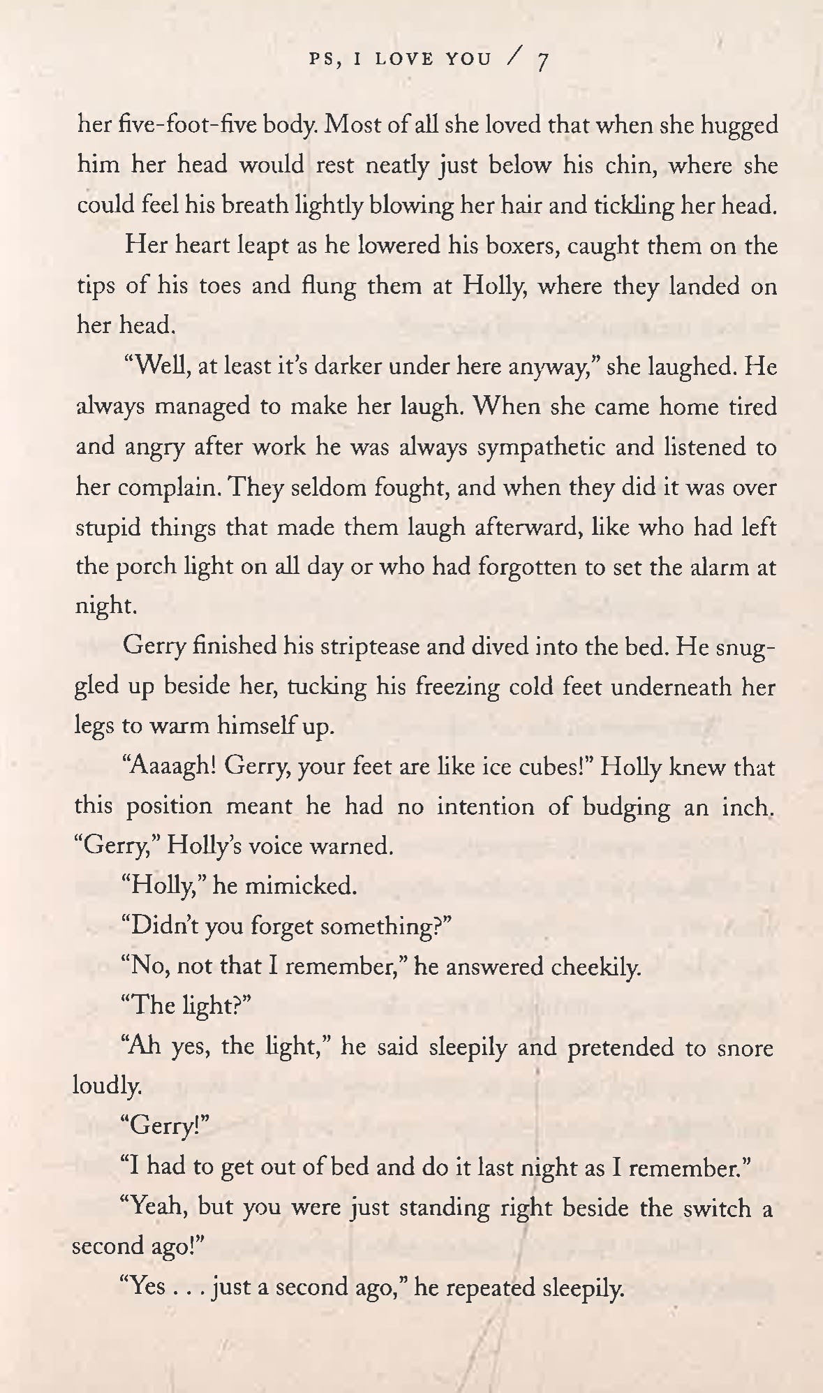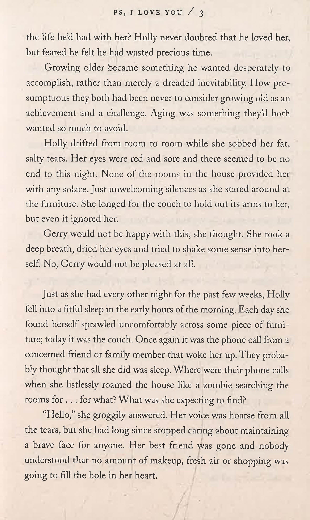 Gerry's death devastates Holly. But as her 30th birthday looms, Gerry comes back to her. He's left her a bundle of notes, one for each of the months after his death, gently guiding Holly into her new life without him, each note signed 'PS, I Love You'. As the notes are gradually opened, and as the year unfolds, Holly is both cheered up and challenged. The man who knows her better than anyone sets out to teach her that life goes on. With some help from her friends, and her noisy and loving family, Holly finds herself laughing, crying, singing, dancing--and being braver than ever before. Life is for living, she realises--but it always helps if there's an angel watching over you.