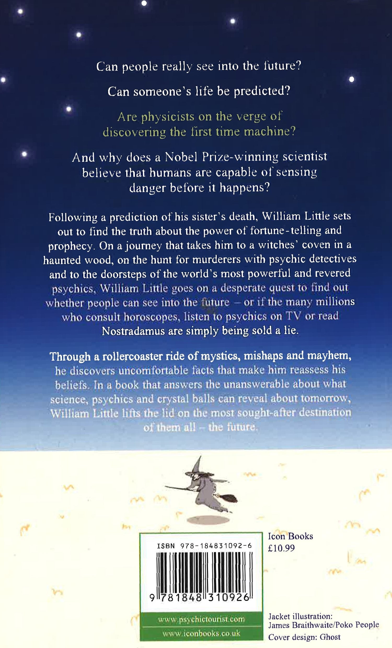 Can people really see into the future? Can someone's life be predicted? Are physicists on the verge of discovering the first time machine? And why does a Nobel prize-winning scientist believe that humans are capable of sensing the future? Following a prediction of his sister's death, William Little set out to learn the truth about the power of fortune telling and prophecy: can people see into the future or are the millions who consult horoscopes, watch TV psychics, or read Nostradamus simply being sold a lie? His journey took him to a witches' coven in a haunted wood, on the hunt for murderers with psychic detectives and to the doorsteps of the world's most powerful and revered psychics. Through a rollercoaster ride of mystics, mishaps and mayhem, he discovered uncomfortable facts that made him reassess his beliefs. In a book that answers the unanswerable about what science, psychics and crystal balls can reveal about tomorrow, William Little lifts the lid on the most sought-after destination of them all: the future. The book includes interviews with US psychic Sylvia Browne, CIA psychic spy Joseph McMoneagale, psychological illusionist Derren Brown, scientist Richard Dawkins, Channel Five's Psychic Challenge Winner Diane Lazarus, experts such as Professor Brian Josephson and Dr Richard Wiseman and Allison Dubois, whose life was the basis for the NBC and BBC programme Medium.