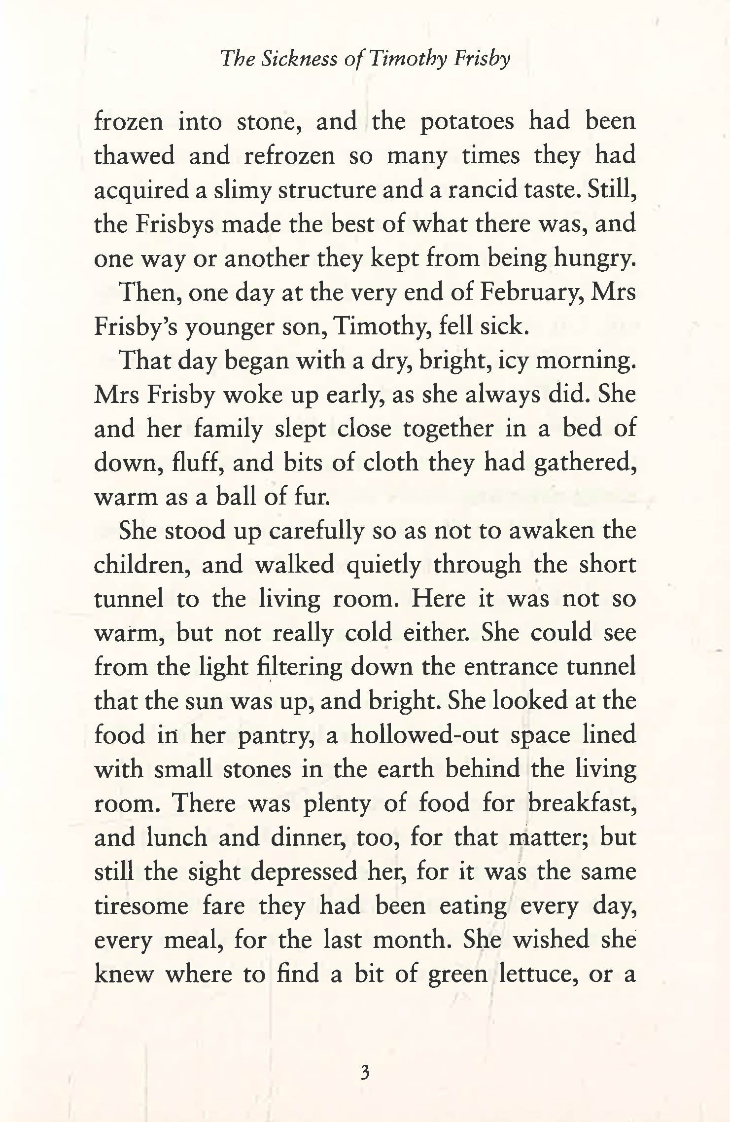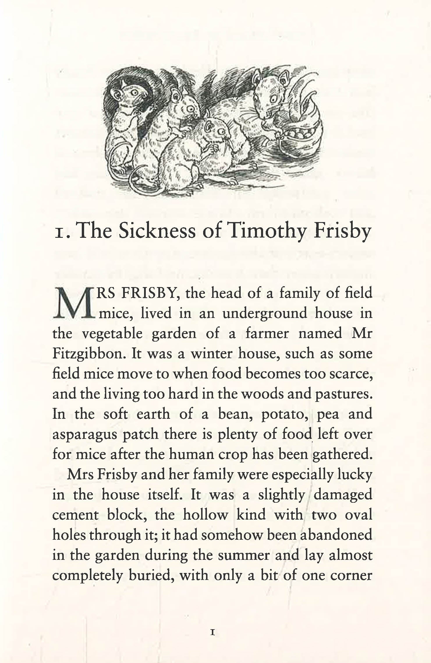 Time is running out for Mrs Frisby, a widowed mouse with four small children. She must move her family before the farmer destroys their home. But her youngest son, Timothy, lies ill with pneumonia and is too sick to be taken on such a perilous journey.