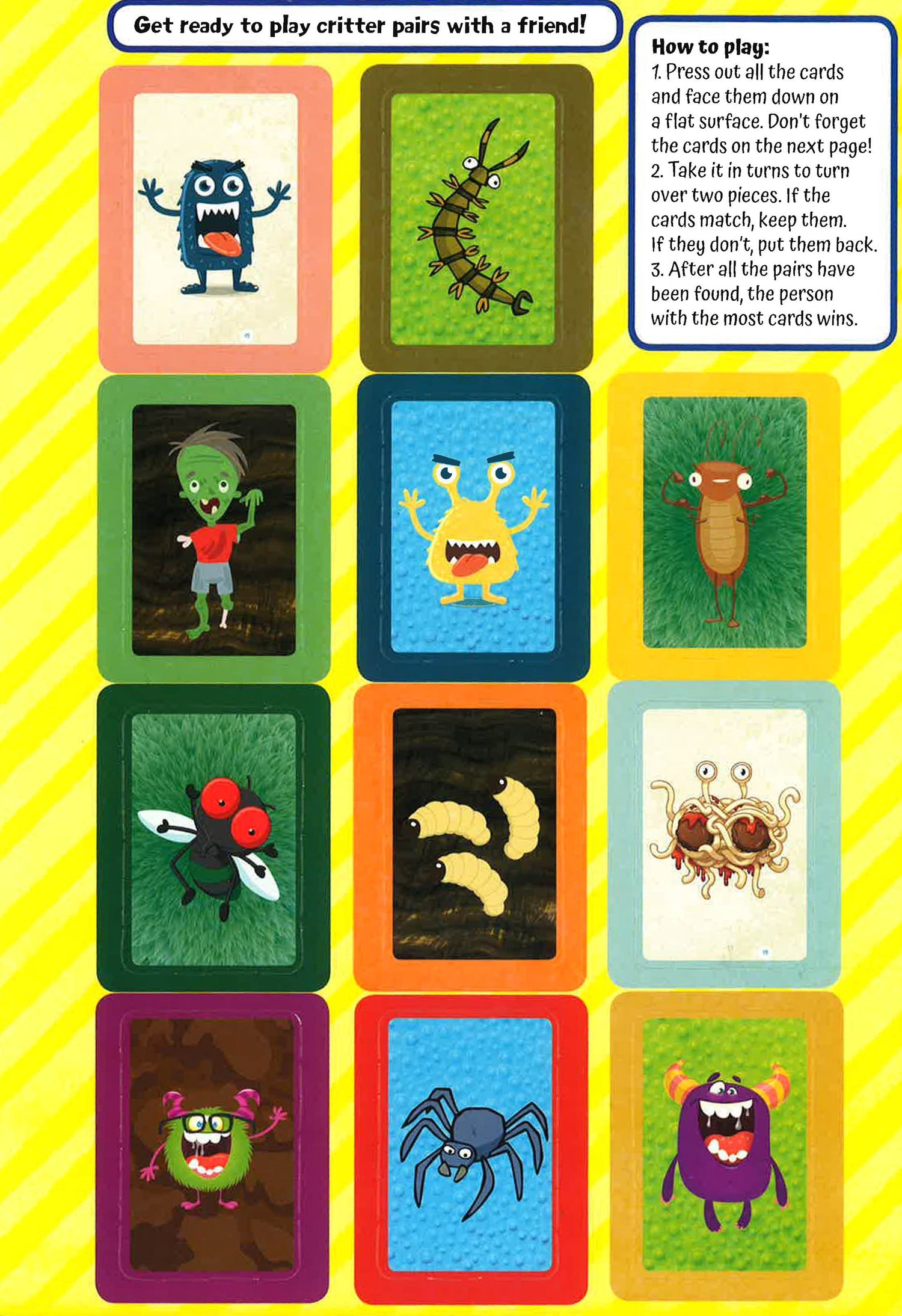 Get ready for some freaky activities! Match up monster pairs, count the creepy-crawlies, then press out your card pieces to make some fiendishly foul friends. Includes 100 puffy stickers to use anywhere you like