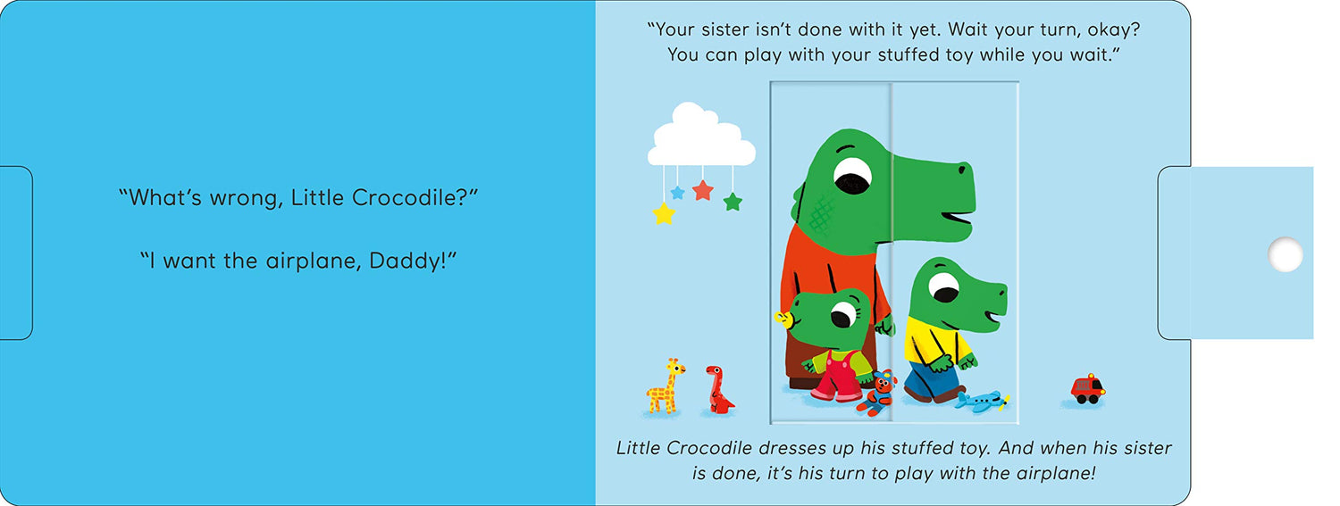 • Features pull-tabs that control the changing pictures, empowering children to apply their newly learned knowledge to their own experience