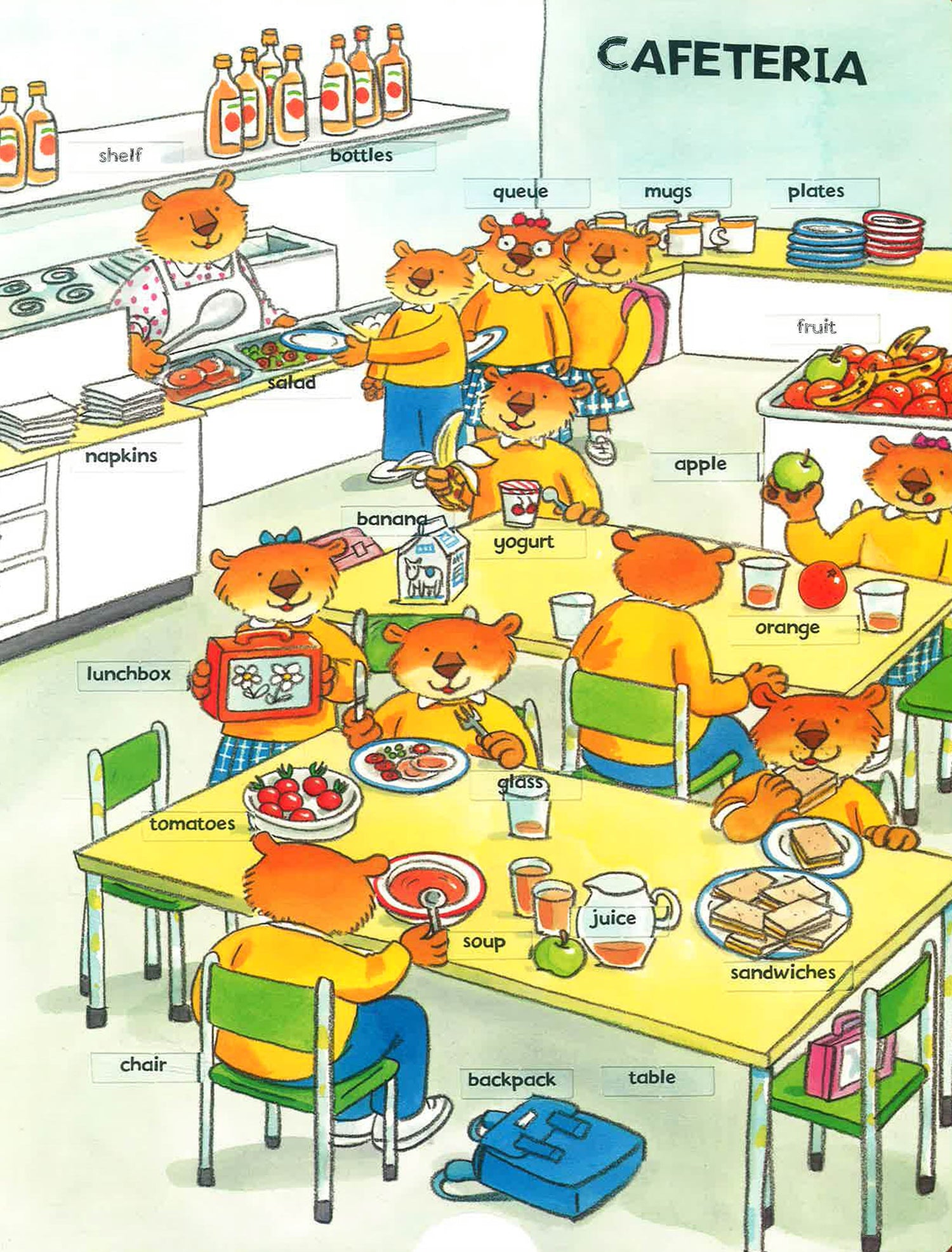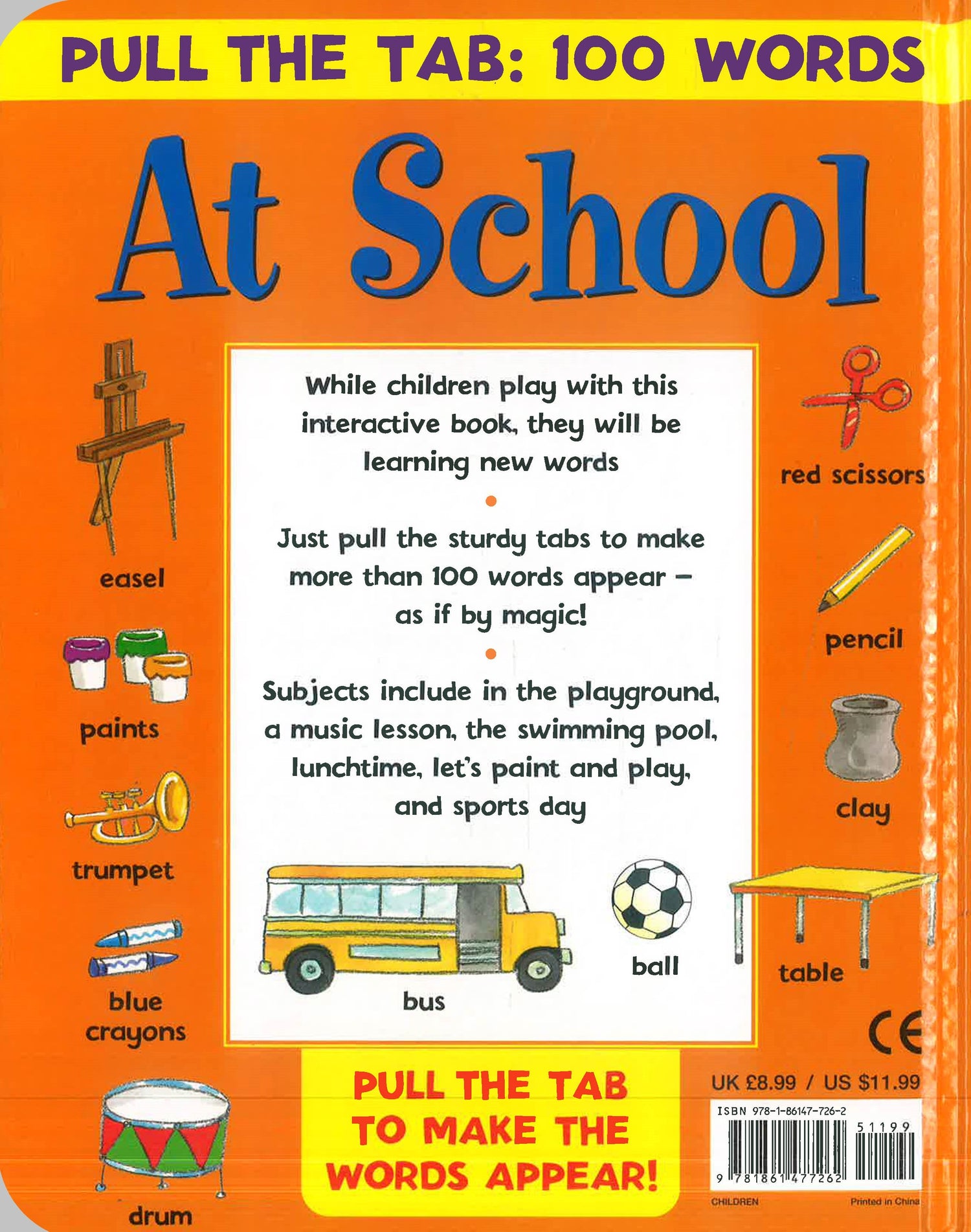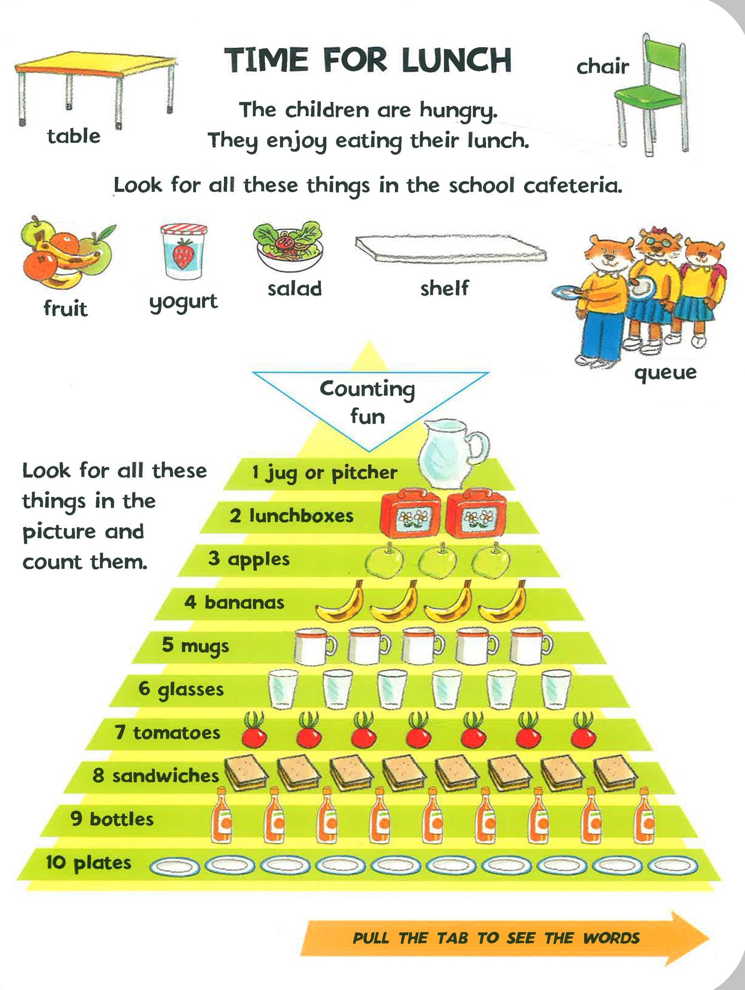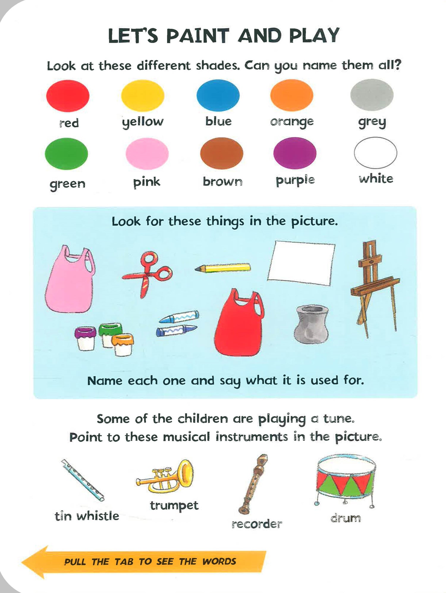 Join Tim and Tina as they begin their first day at school. See if you can match all the listed words to the illustrations, which are shown separately and within each big picture scene. Spot the various shades of paint in the classroom. Count all the items in the cafeteria at lunchtime - from one container of juice to ten plates. Find the pictures that go with the underlined words and concepts at the swimming pool and during story time. It all adds up to an educational and entertaining day at school for Tim and Tina - and for youngsters everywhere!