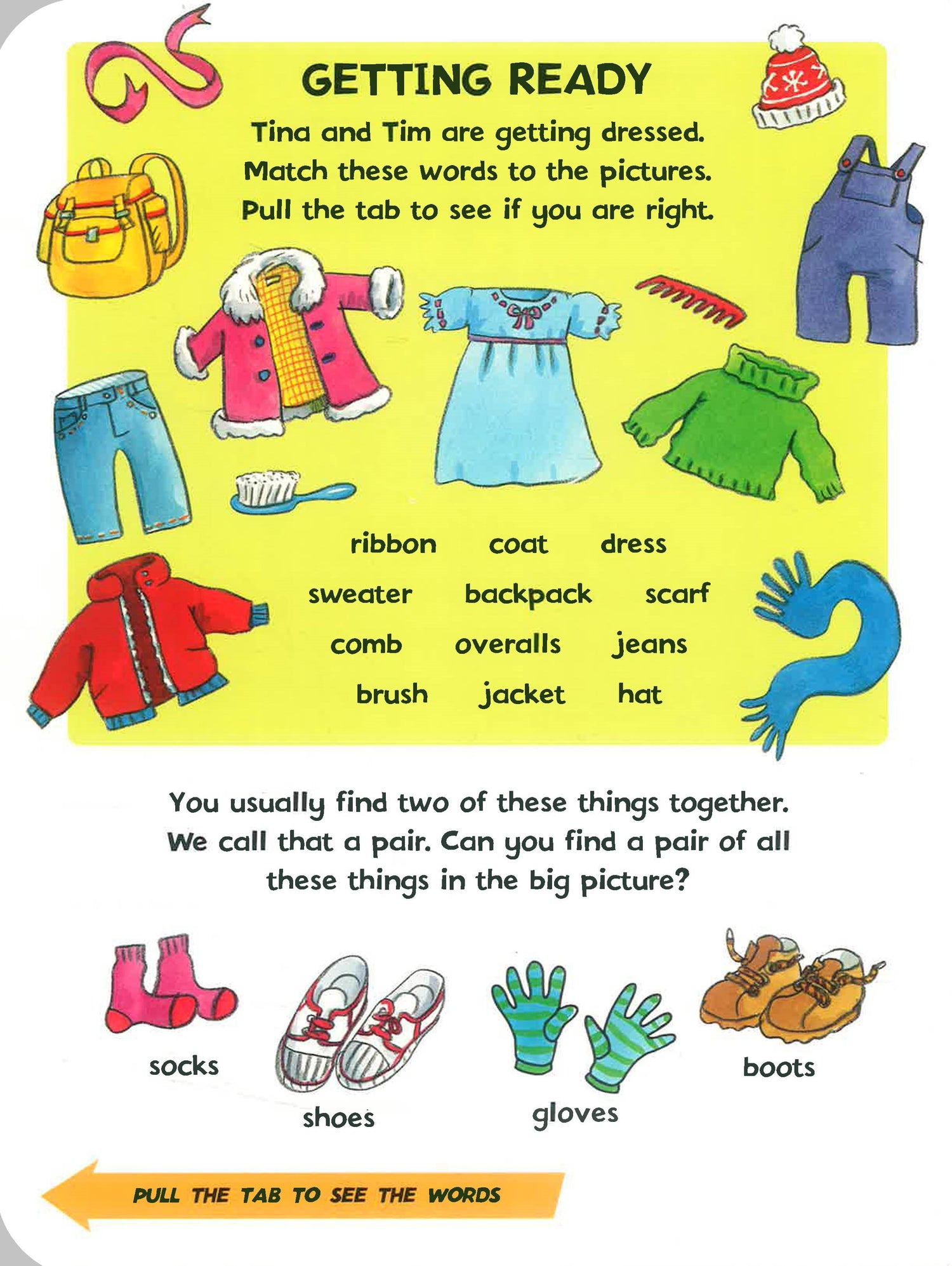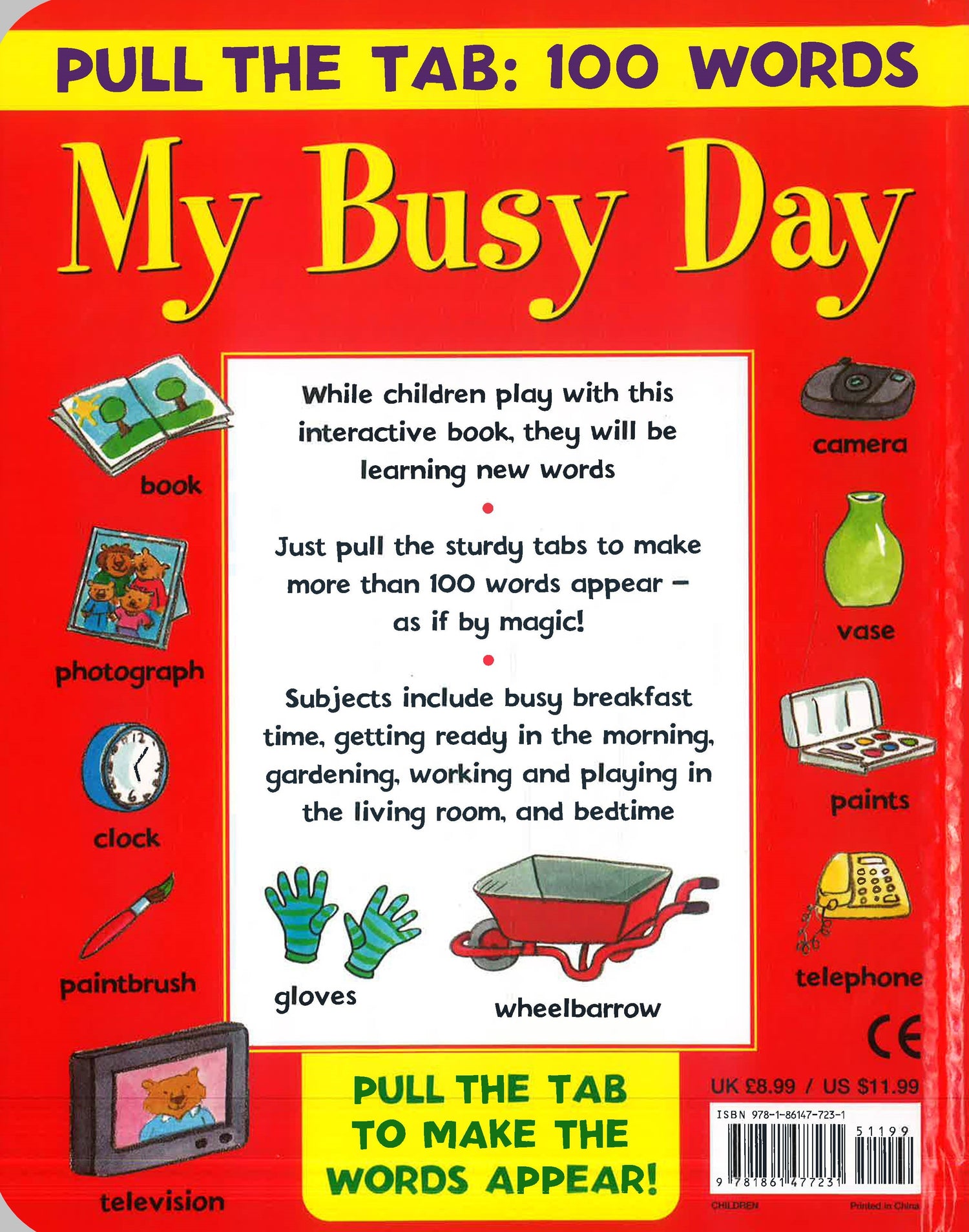 Join Tim and Tina during their busy day! It starts in the morning, when Father is making breakfast. See the children helping out, and see if you can match all the listed words to the illustrations, which are shown separately and within the big picture scene. Then it's time to get dressed. As well as matching the words, can you put Tina and Tim's gloves and footwear into pairs? There are all the shades of the rainbow to spot out in the garden, and different shapes in the bathroom. All in all, this book will keep any young reader busy for hours!