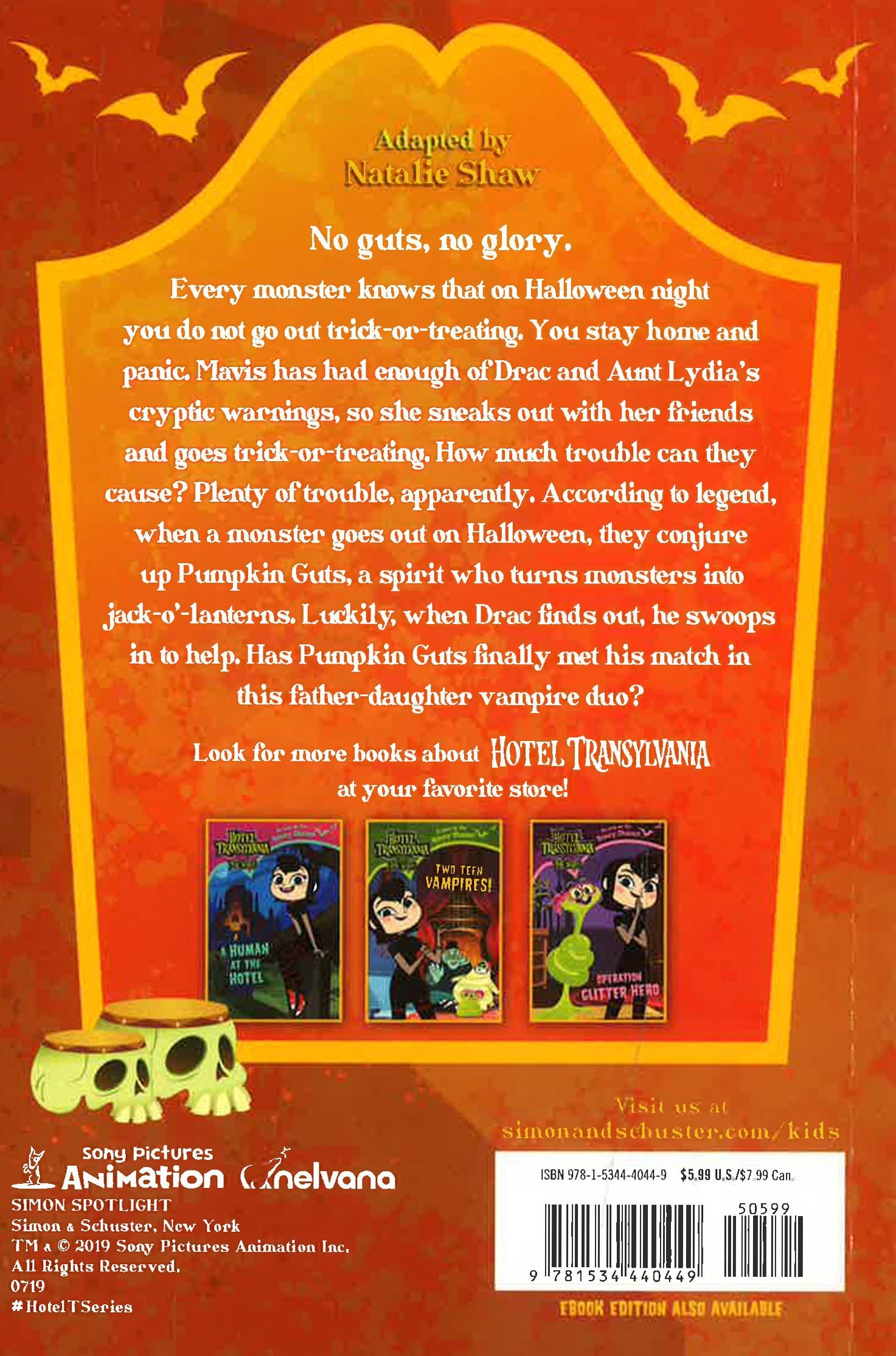 Mavis and her friends go trick-or-treating in this hilarious novel based on an episode of the hit Disney Channel show Hotel Transylvania: The Series.On Halloween, a curious Mavis and her friends break with tradition and do something every monster has been warned not to do: they go trick-or-treating. How much trouble can they cause? Plenty apparently. According to legend, when monsters go out on Halloween they conjure up Pumpkin Guts, a centuries-old spirit who wants to turn all monsters into jack-o'-lanterns. Luckily Drac finds out and takes a short break from the Vampire Council. Surely he can help Mavis before she's reduced to a pile of pumpkin seeds and guts! (TM) & (c) 2019 Sony Pictures Animation Inc. All Rights Reserved.